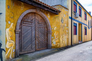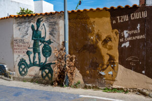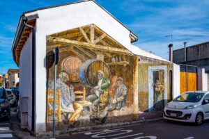 Cependant, peu à peu, d’autres fresquistes, peintres plutôt ! vinrent d’ailleurs et d’Europe joindre leur talent à l’originale entreprise. Et la variation tant en thèmes qu’en qualité, colore d’humanité simple ce paese museo et rend si agréable cette flânerie dans les rues du village qui s’enorgueillit tout de même de plus de 400 murales !