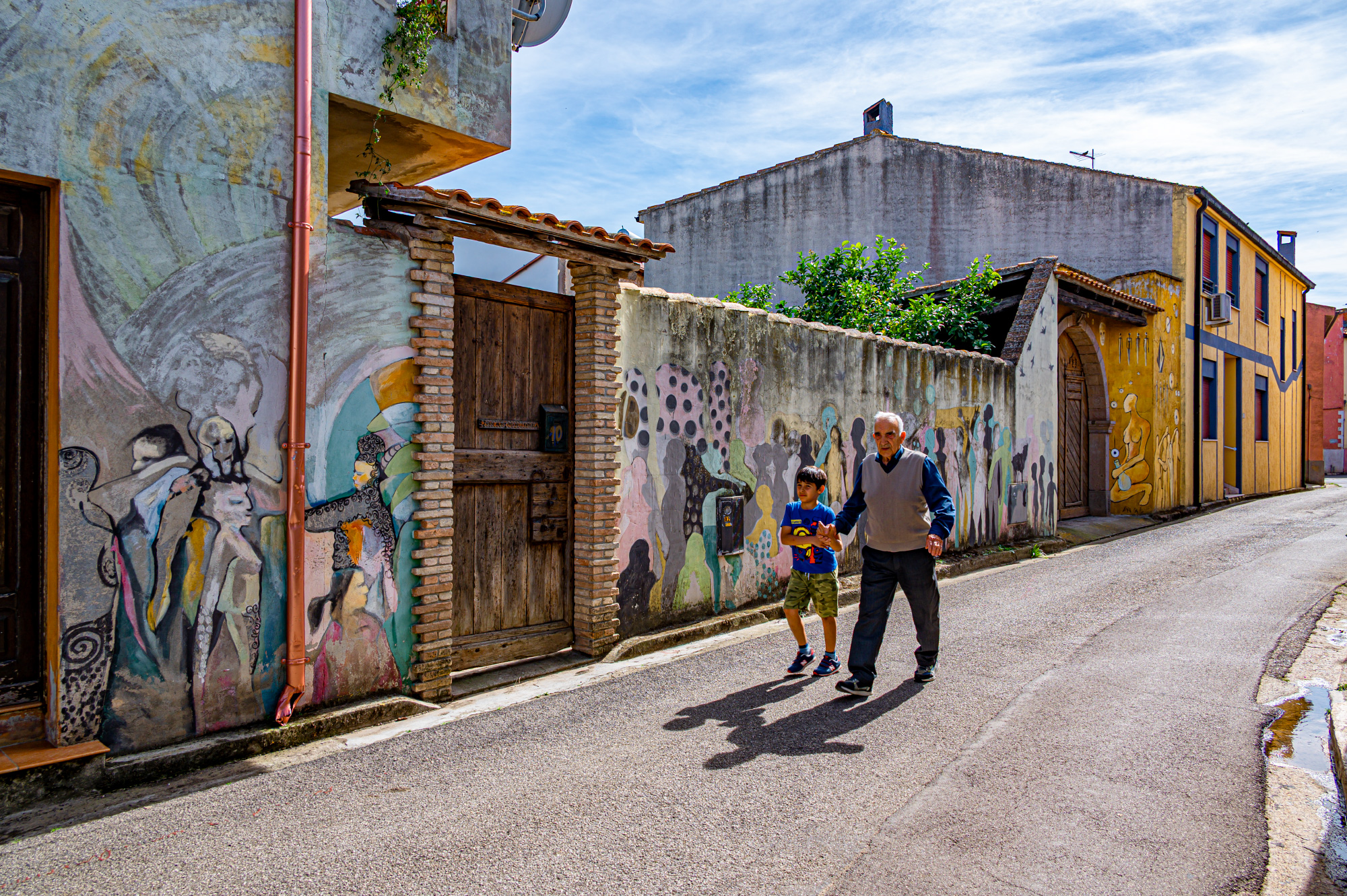 C’est ainsi que de retour dans son village natal, avec quelques amis il lance le mouvement « Paese Museo » transformant l’espace urbain de ce petit village du Campidano. Et ce n’est pas rien, comme vous allez le VOIR !