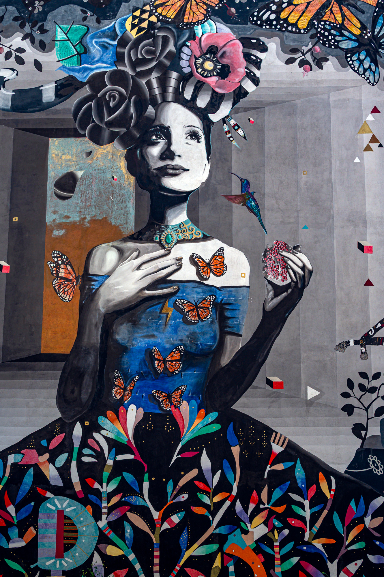 Le protagoniste de cette œuvre, peinte aussi par Giorgio Casu, s’épanouissant sur ce mur de 220 m² mis à disposition par la famille des boulangers Foddi est Koré «  la jeune fille », autre nom de Perséphone (celui de la littérature homérique) qui, dans la mythologie grecque, fut enlevée très jeune par le dieu des enfers Hadès et qui, depuis lors, passait six mois par an aux côtés de son infernal mari et les six autres sur terre aux côtés de sa mère Déméter.