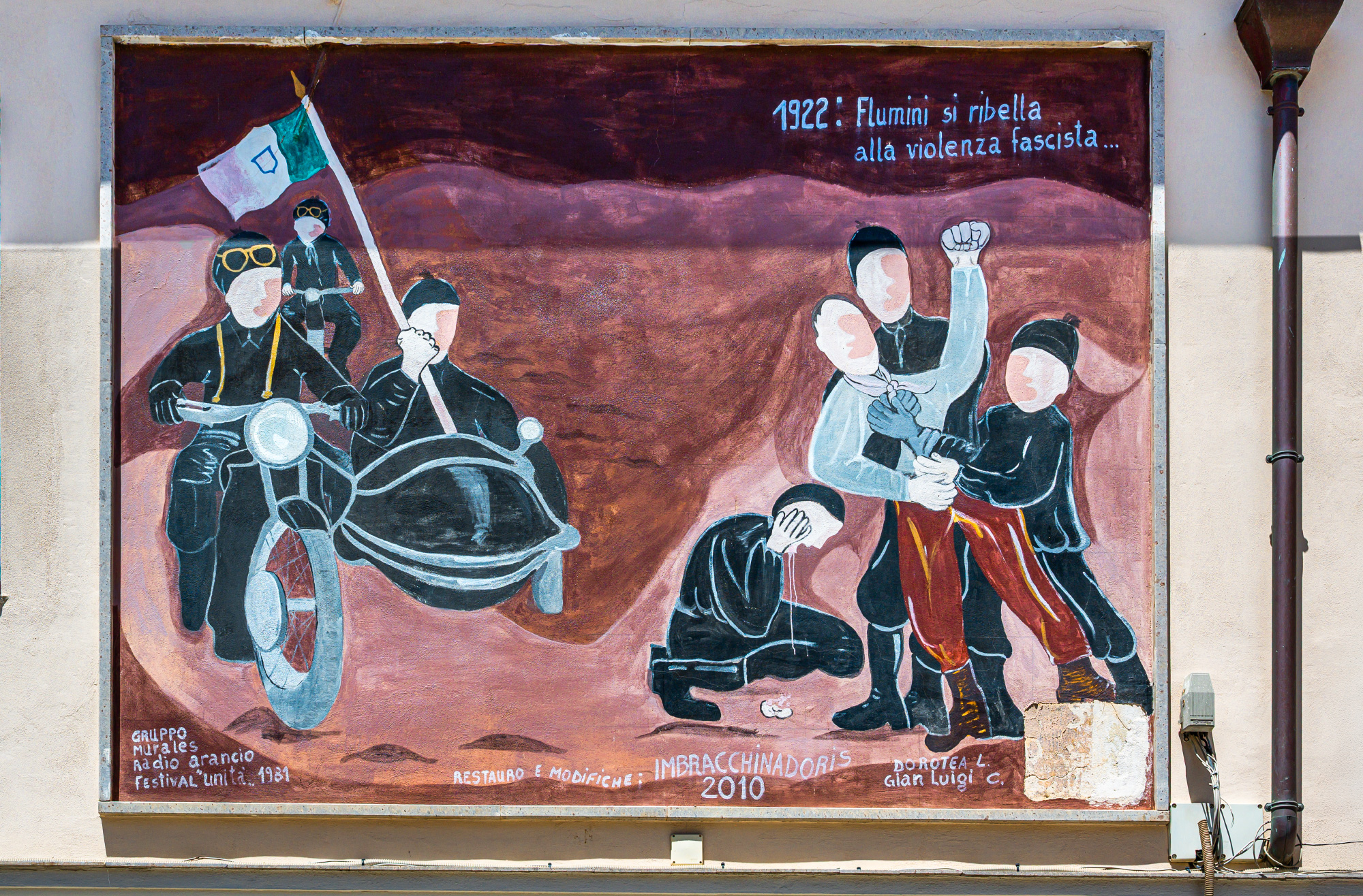 À Fluminimaggiore, le groupe Murales Radio Arancio, auteur des premières fresques murales ici, début 1981, a réalisé, entre autres, 1922 : Flumini si ribella  Flumini se rebelle.