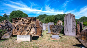 Mais à trois pas de là, en promenant Ringo qui avait donc été faire à l’aurore sa cour et sa pissette du matin, je tombe rue Oriana Fallaci sur l’entrée du « giardino sonoro » initié par Pinuccio Sciola sur le propre domaine de vergers de la famille Sciola… que nous décidons donc de visiter après le petit dèj.