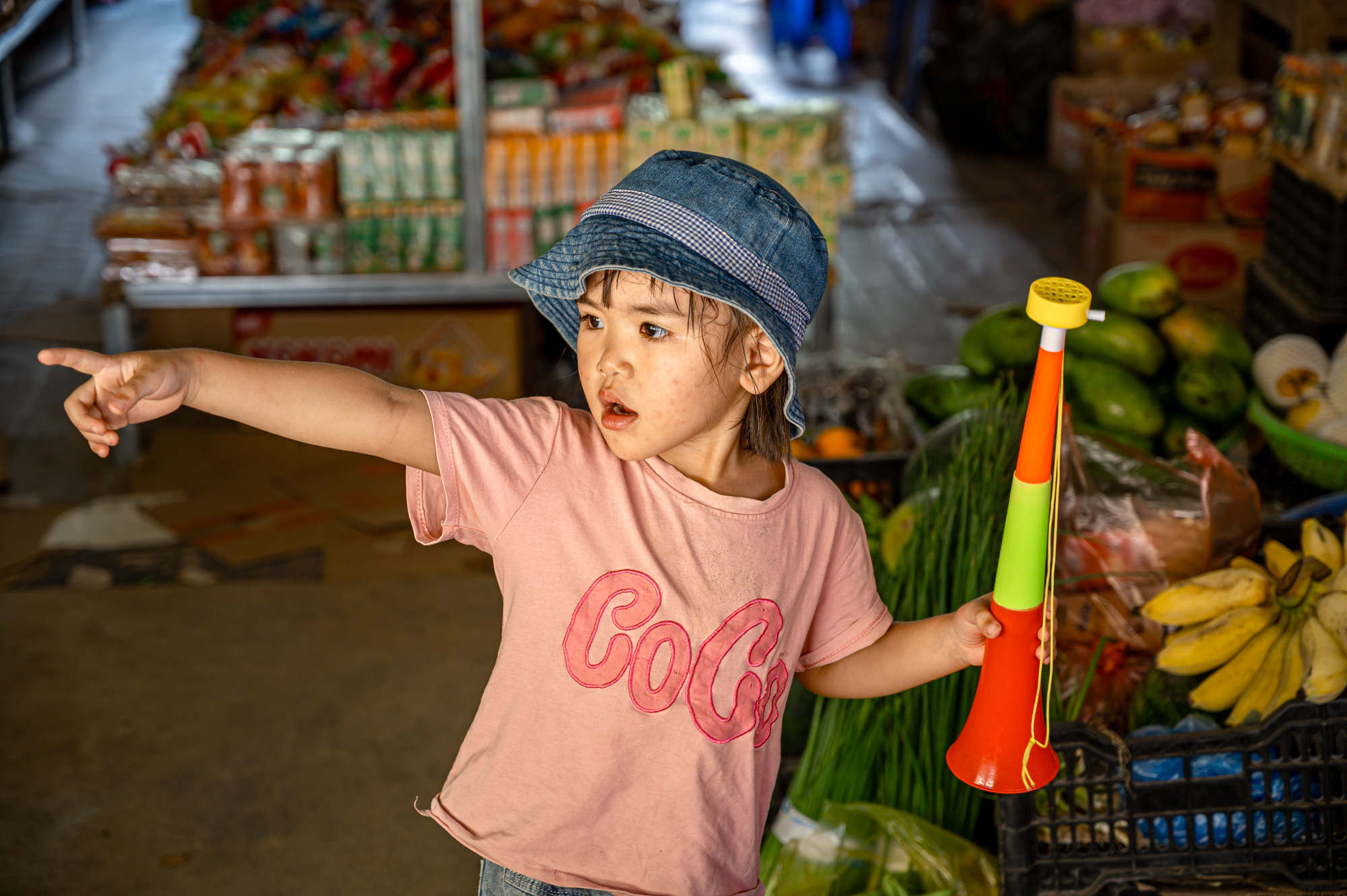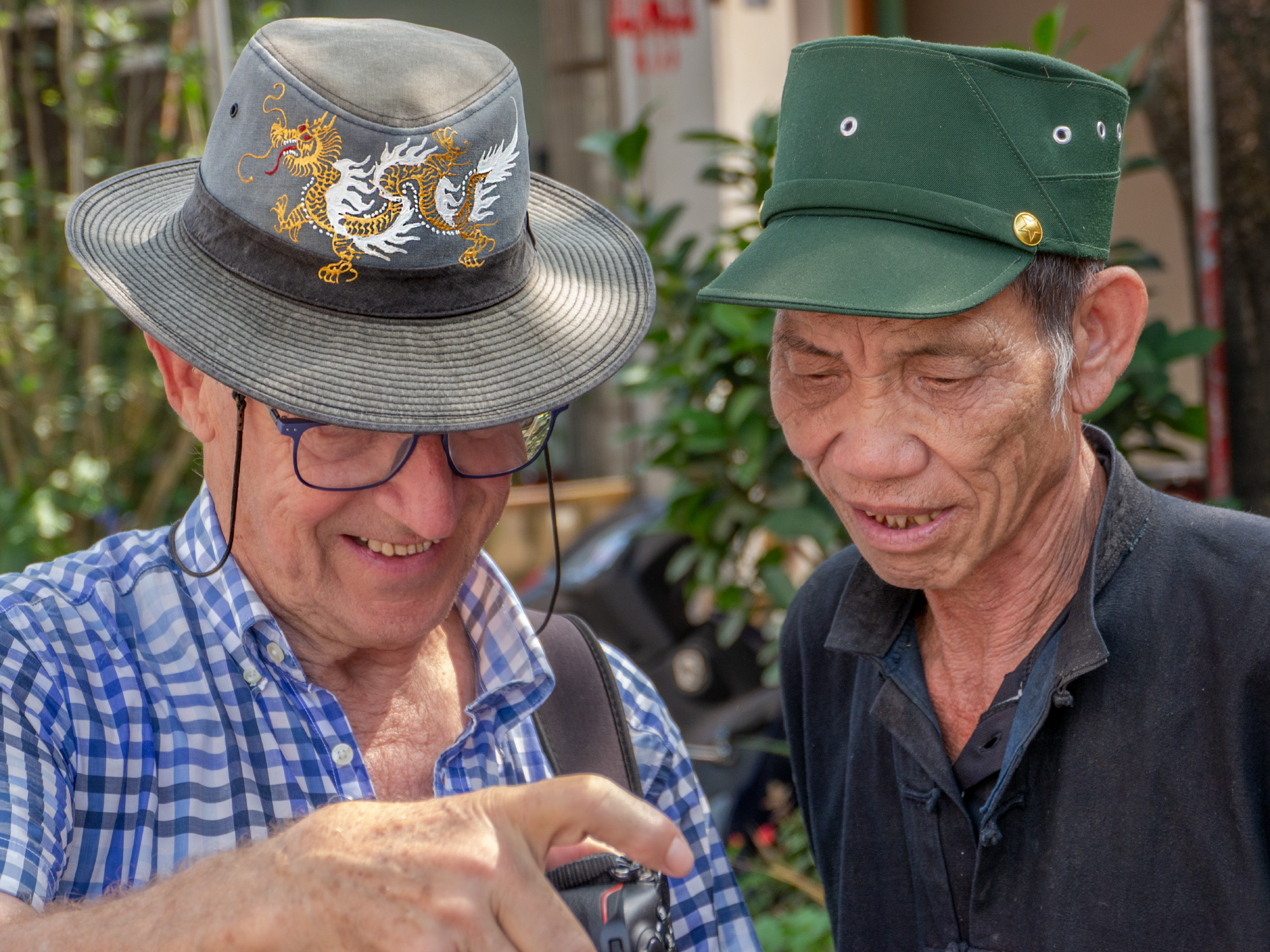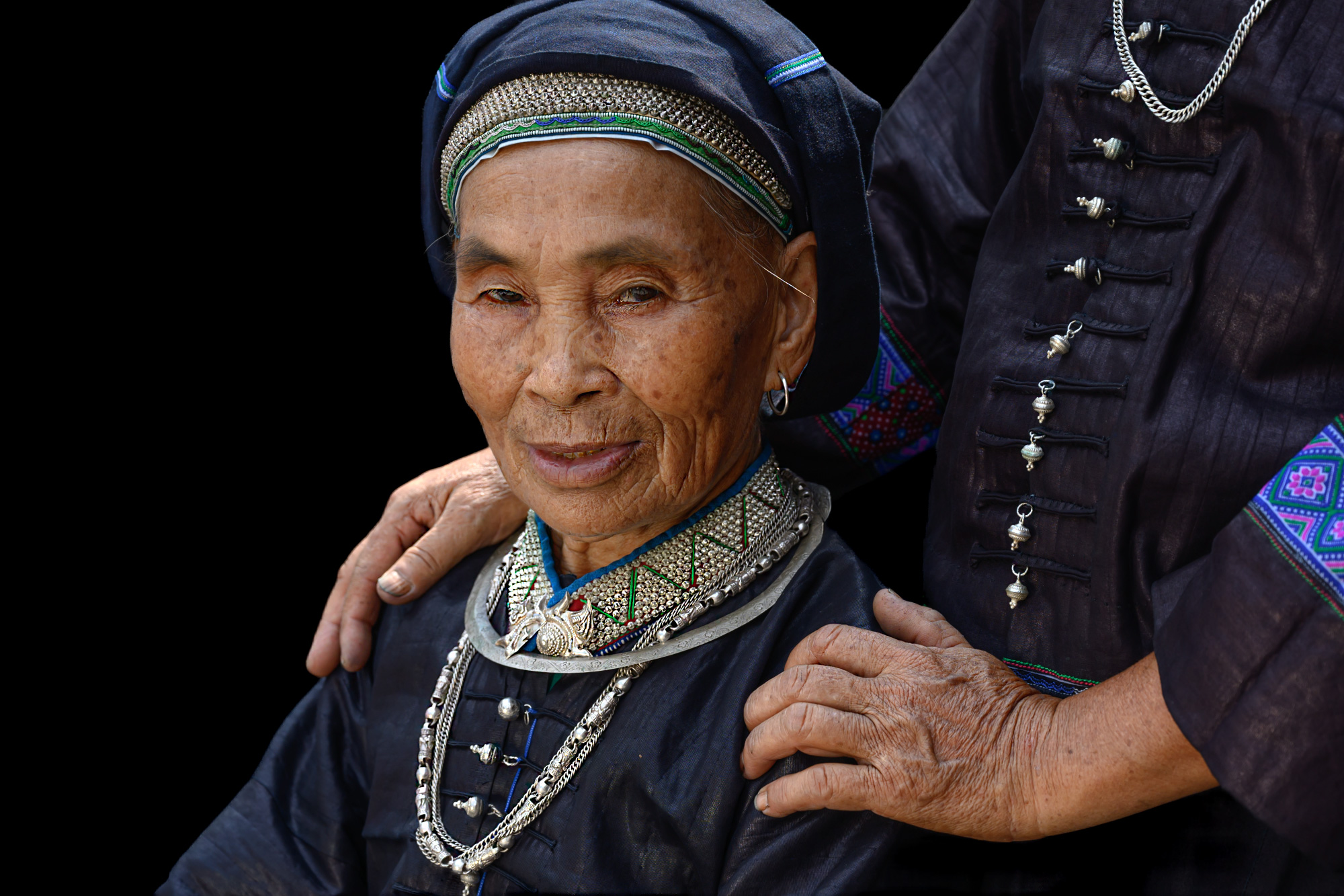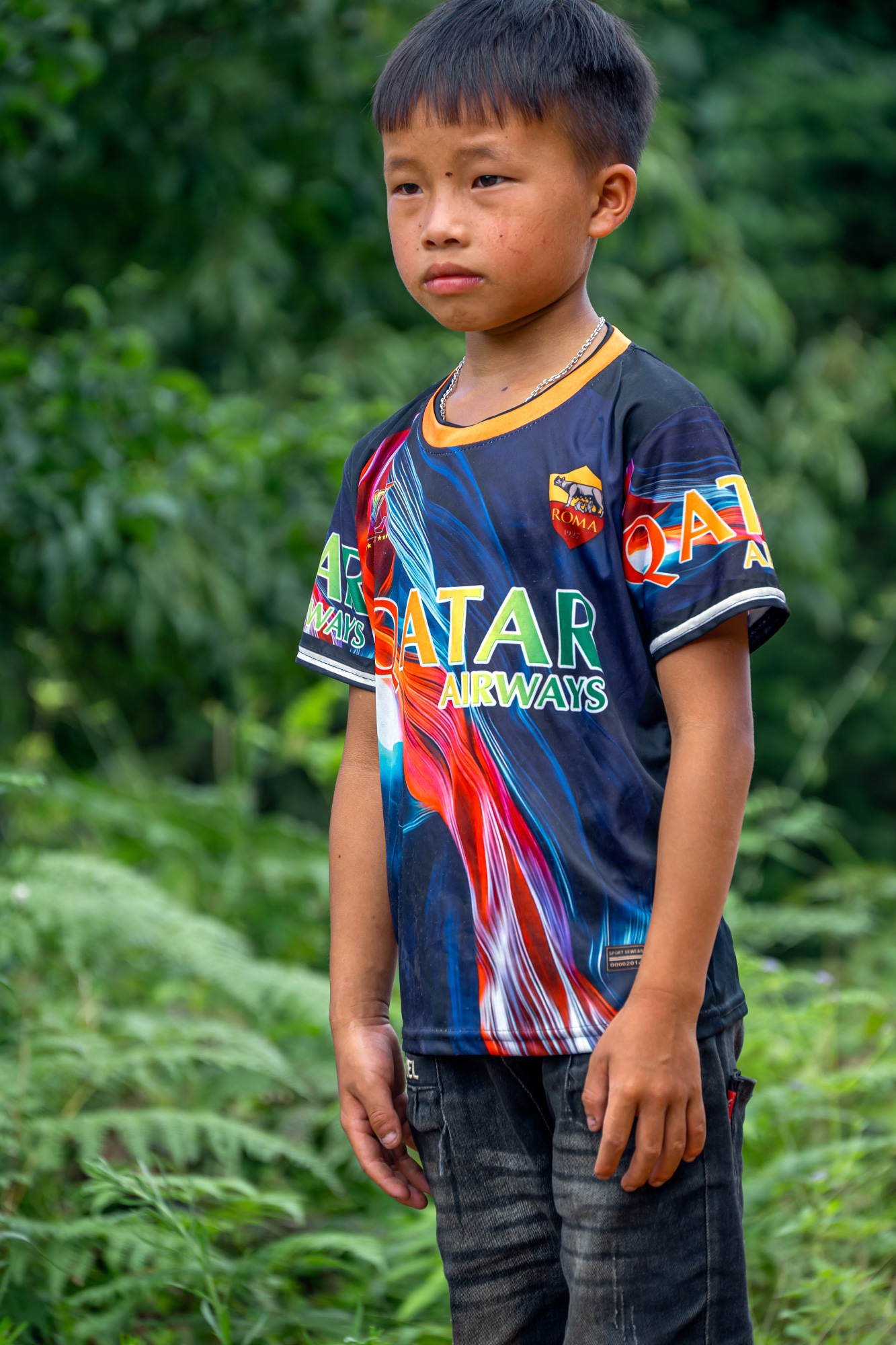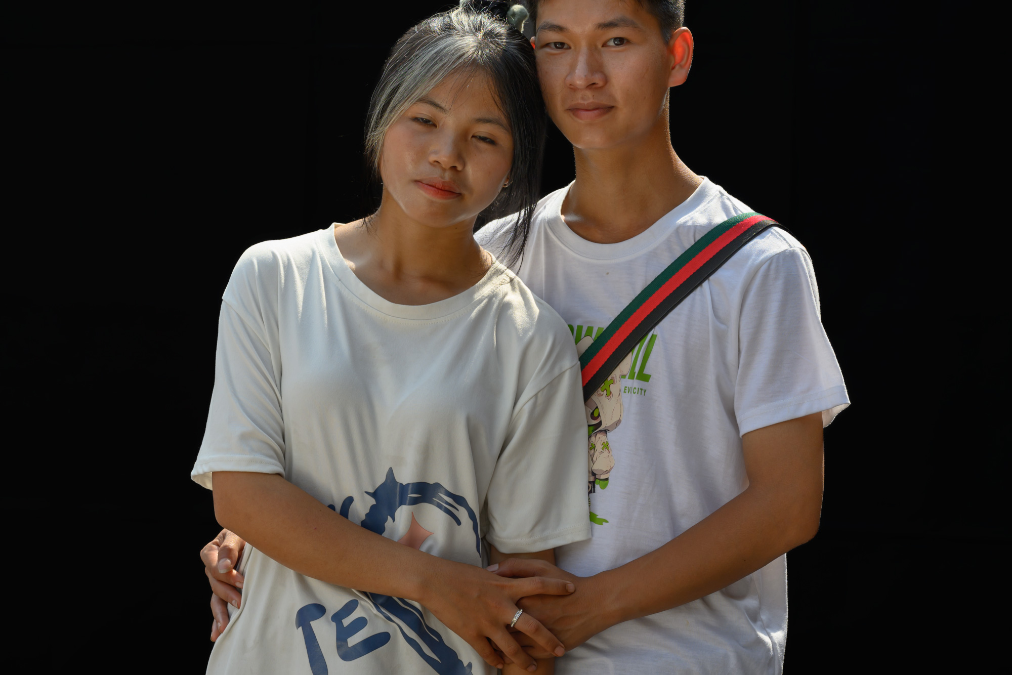 4- À ajouter un élément surprenant et intéressant. Dans le village de Xin Man, le jour du marché traditionnel une séance de studio photo élémentaire est réalisée en extérieur sur la terrasse d’un bar, en plein marché. Avec un dispositif simplifié mais efficace : un fond noir et un réflecteur lastolit, la lumière naturelle du soleil arrivant légèrement par derrière. Certes certes, mais… les modèles ??? Et bien c’est Thui qui se charge d’aller convaincre les passantes de venir poser un instant (la prise de vue dure quelques minutes). Et avec quel argument incitatif ??? Celui de repartir avec un tirage photo de 13×18 réalisé sur le champ avec une petite imprimante Canon. Et ??? Et ça marche !!! Incroyable ! Quand je vous parlais de bienveillance extraordinaire ! Ce qui n’enlève rien à la capacité de persuasion de Thui.🤪 Bien sûr certain(e) ont refusé mais à ce que j’ai vu, c’était plus pour des raisons de « programme personnel » : elle avait terminé le marché, tenait à bout de bras, des sacs et des sacs de marchandises et une poule et… était pressée de rentrer chez elle.