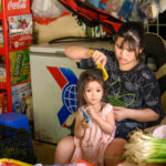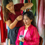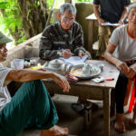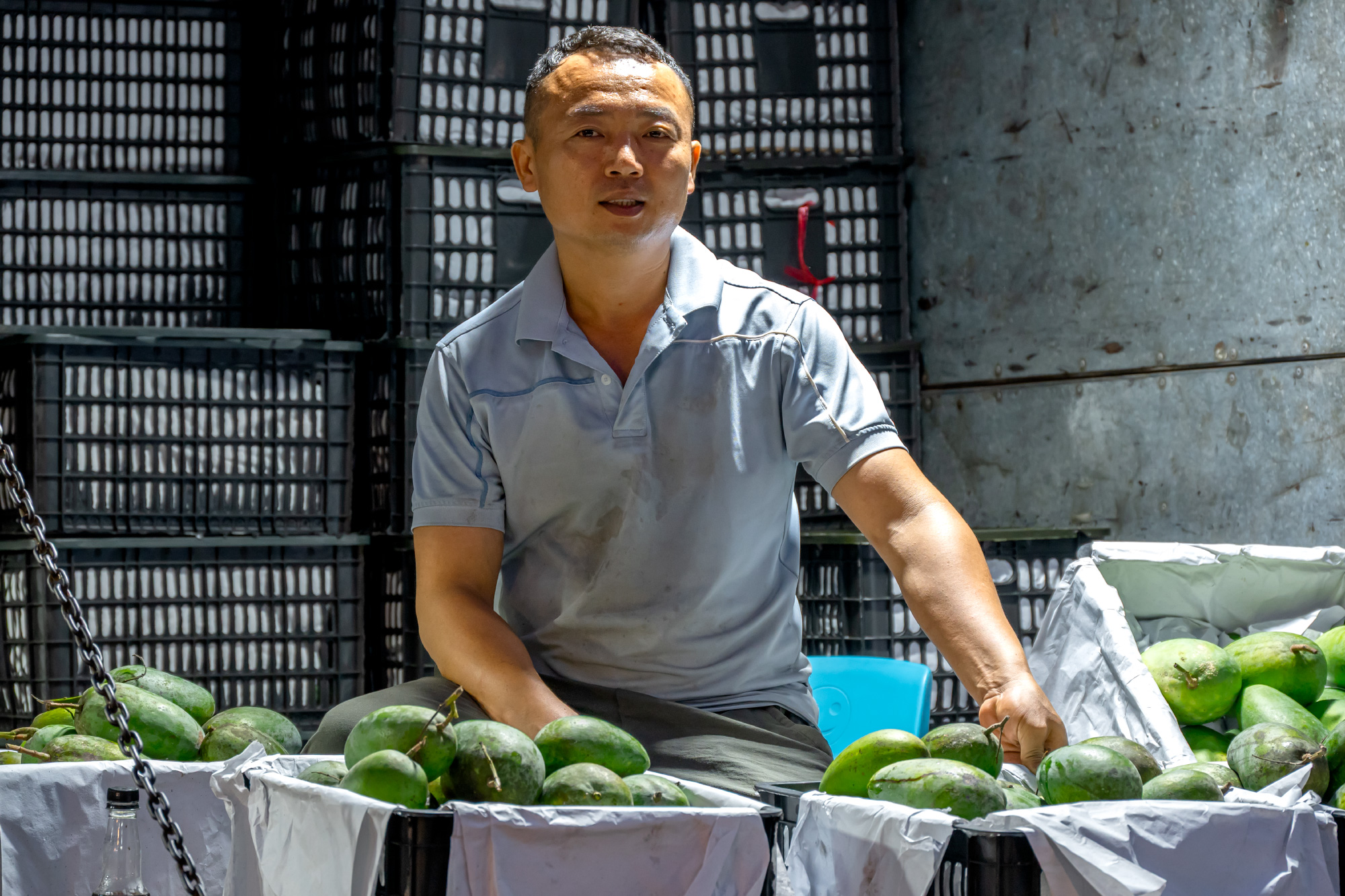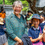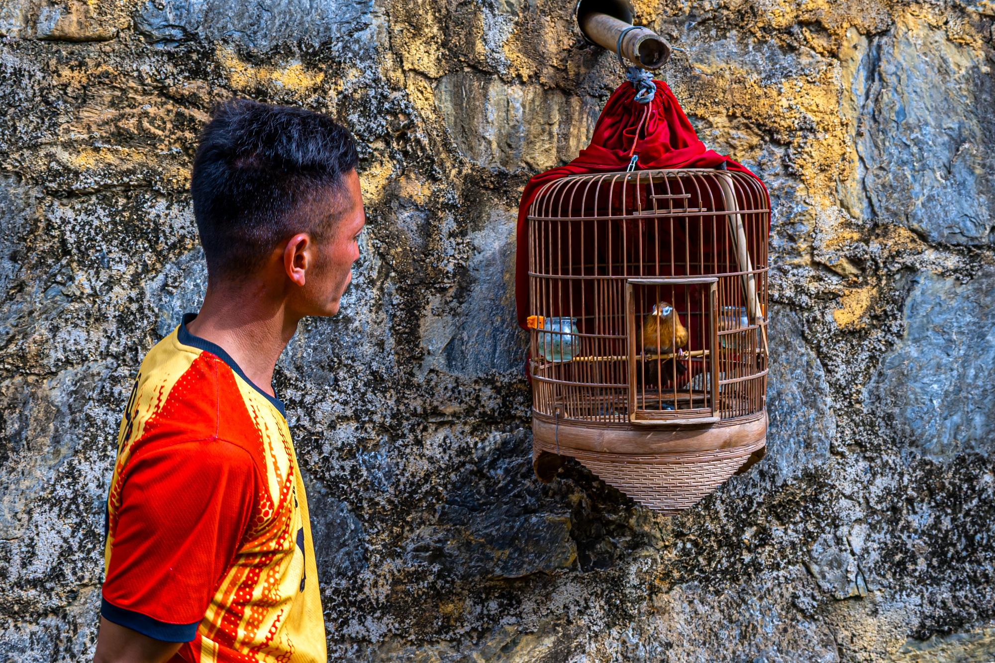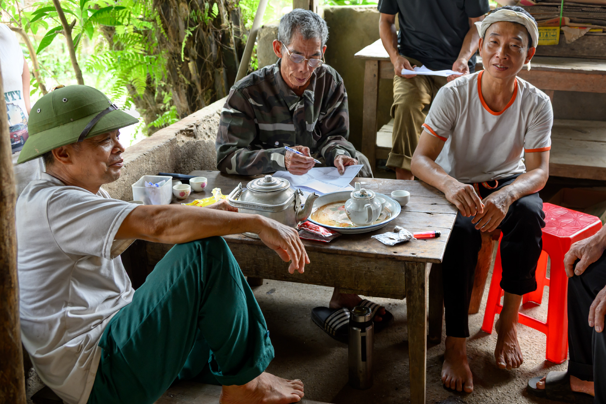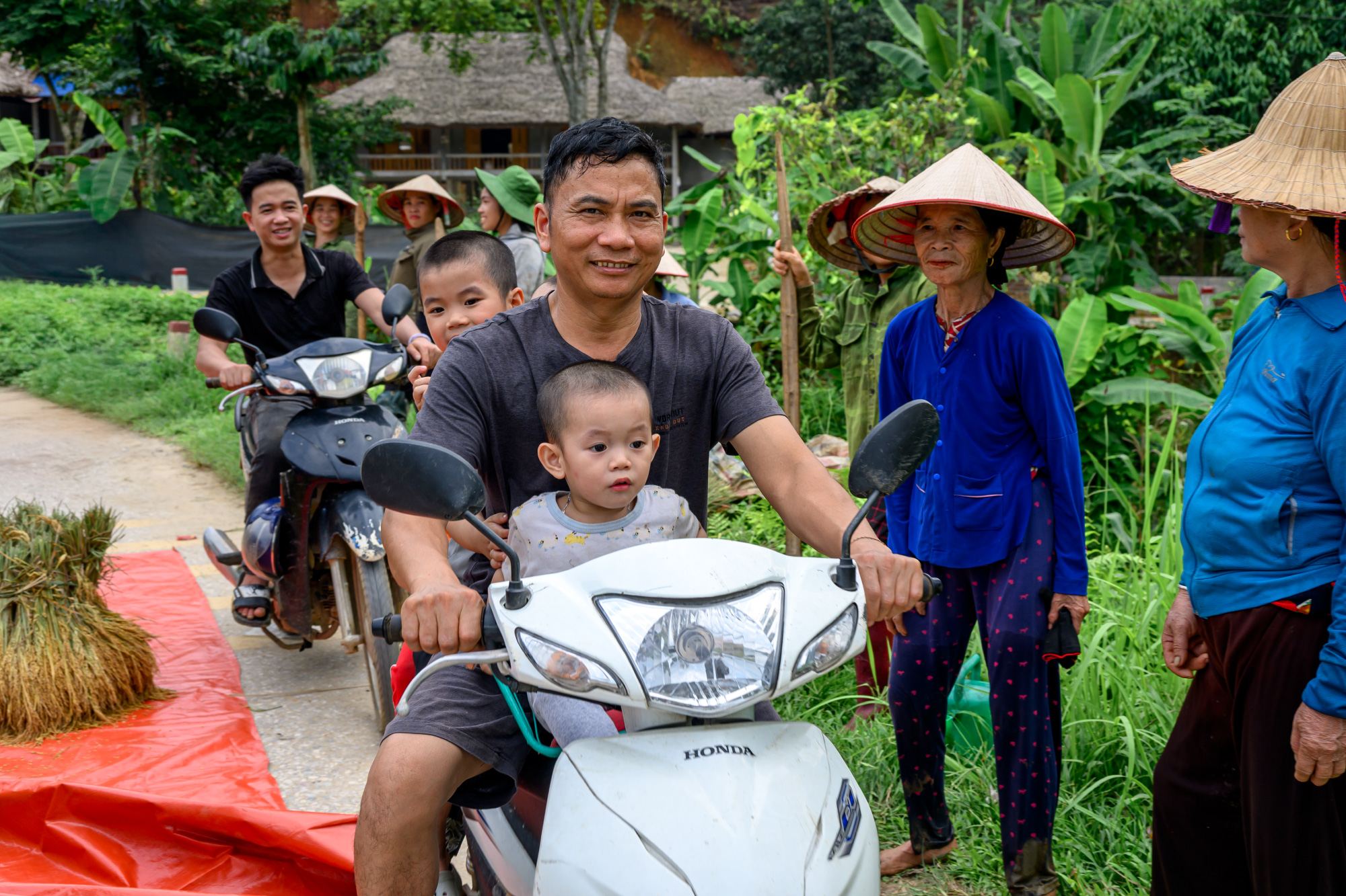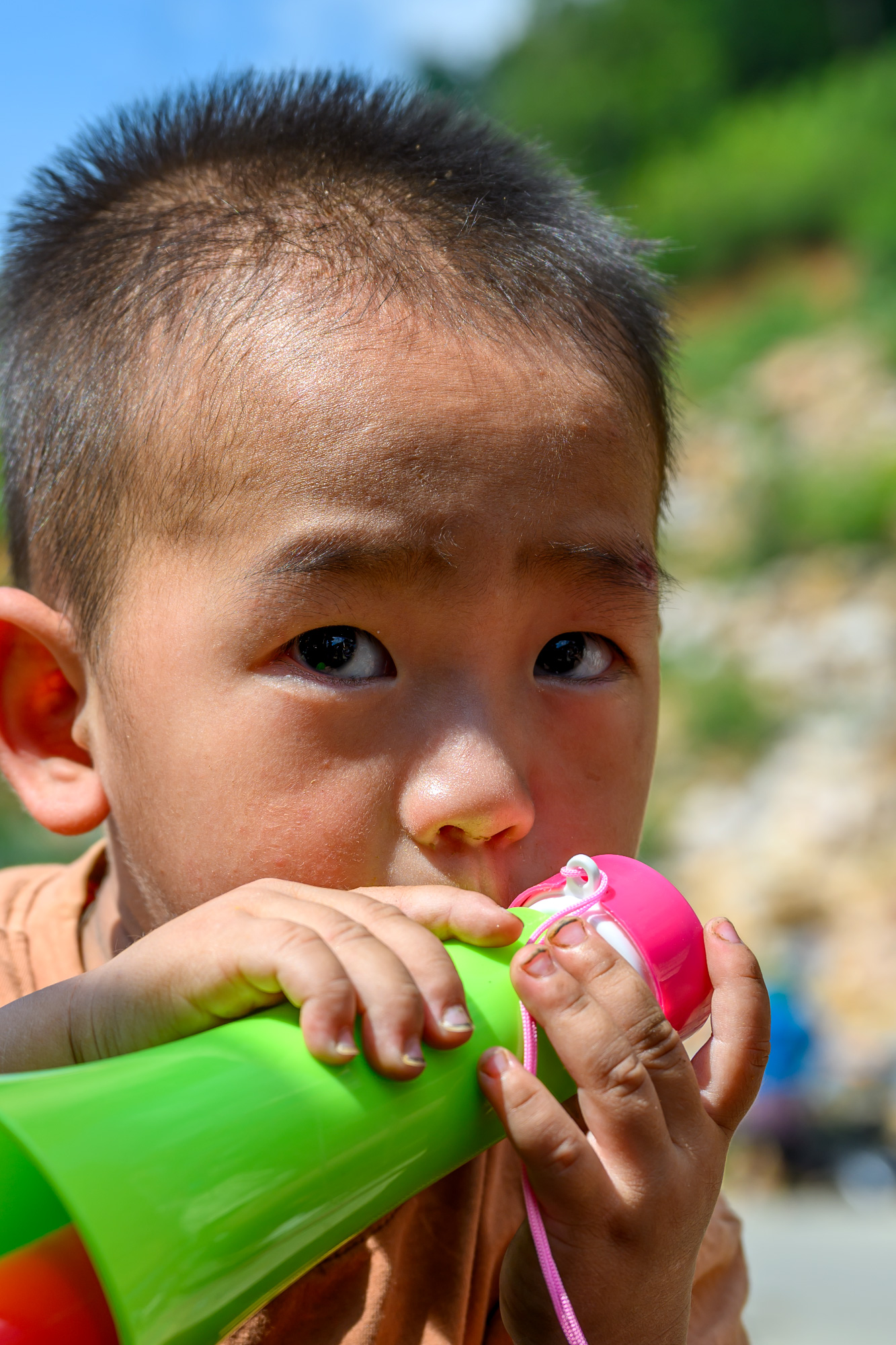 4- À ajouter un élément surprenant et intéressant. Dans le village de Xin Man, le jour du marché traditionnel une séance de studio photo élémentaire est réalisée en extérieur sur la terrasse d’un bar, en plein marché. Avec un dispositif simplifié mais efficace : un fond noir et un réflecteur lastolit, la lumière naturelle du soleil arrivant légèrement par derrière. Certes certes, mais… les modèles ??? Et bien c’est Thui qui se charge d’aller convaincre les passantes de venir poser un instant (la prise de vue dure quelques minutes). Et avec quel argument incitatif ??? Celui de repartir avec un tirage photo de 13×18 réalisé sur le champ avec une petite imprimante Canon. Et ??? Et ça marche !!! Incroyable ! Quand je vous parlais de bienveillance extraordinaire ! Ce qui n’enlève rien à la capacité de persuasion de Thui.🤪 Bien sûr certain(e) ont refusé mais à ce que j’ai vu, c’était plus pour des raisons de « programme personnel » : elle avait terminé le marché, tenait à bout de bras, des sacs et des sacs de marchandises et une poule et… était pressée de rentrer chez elle.
