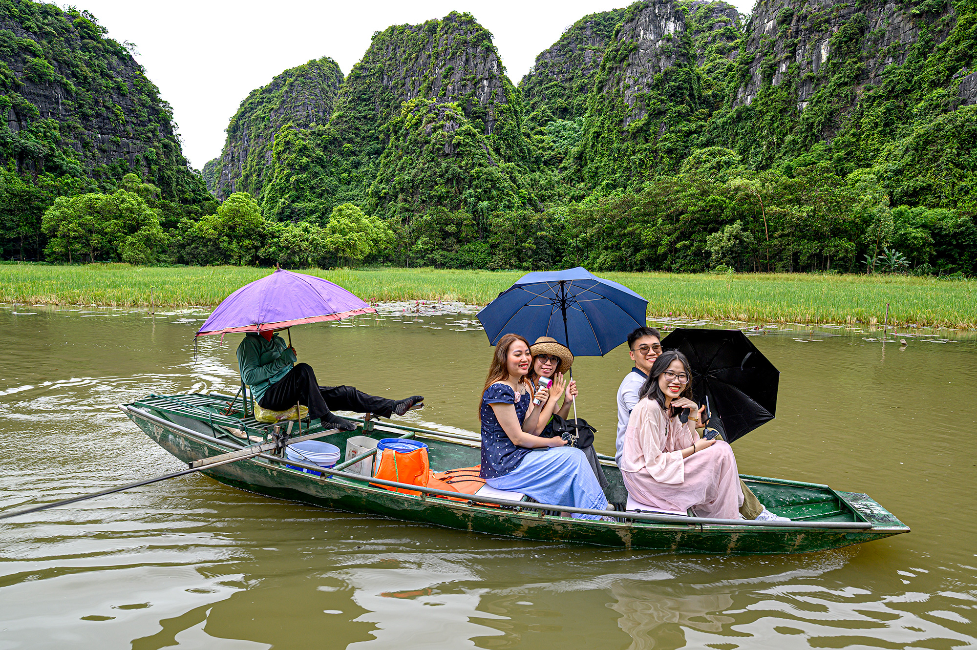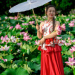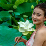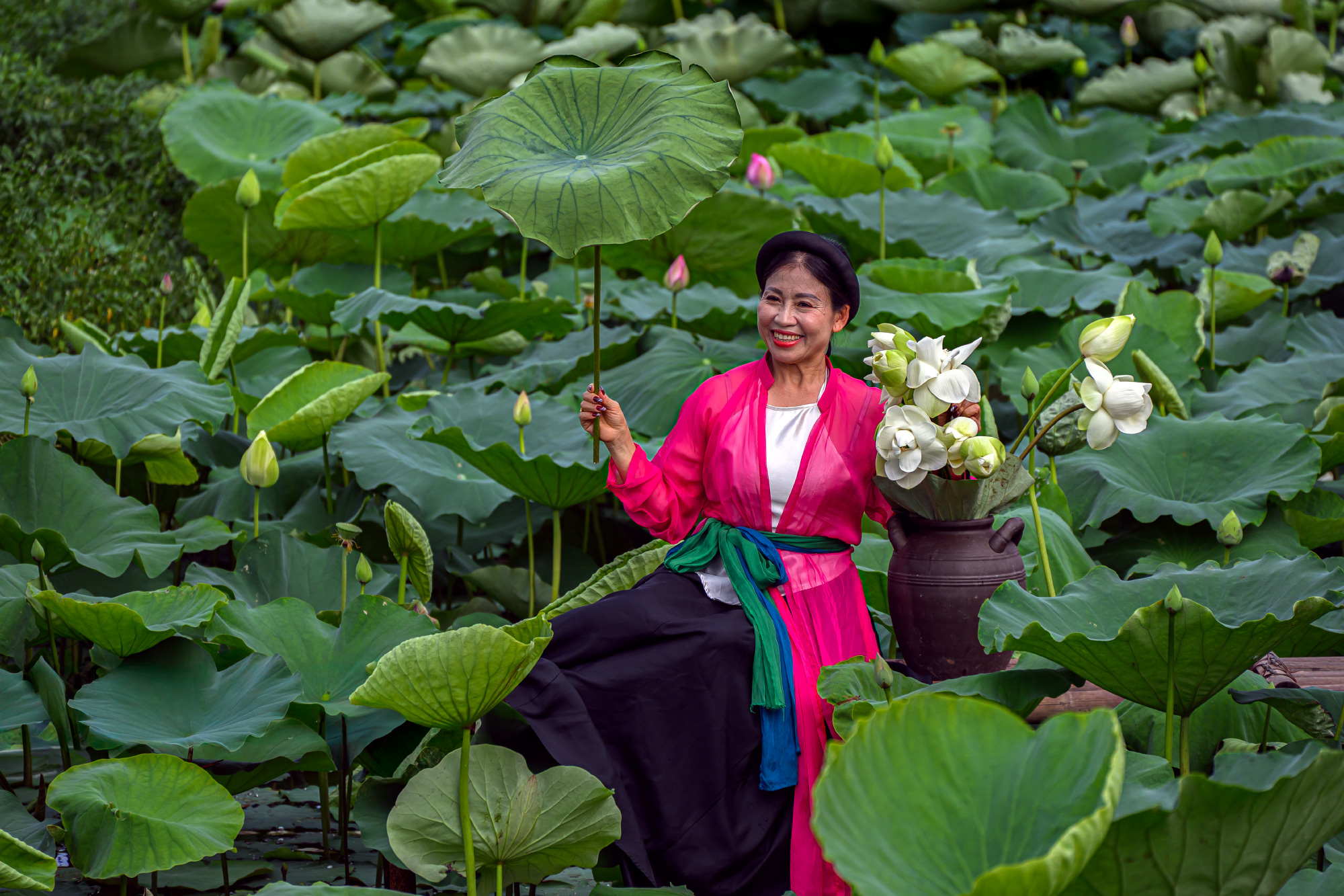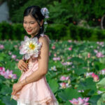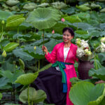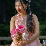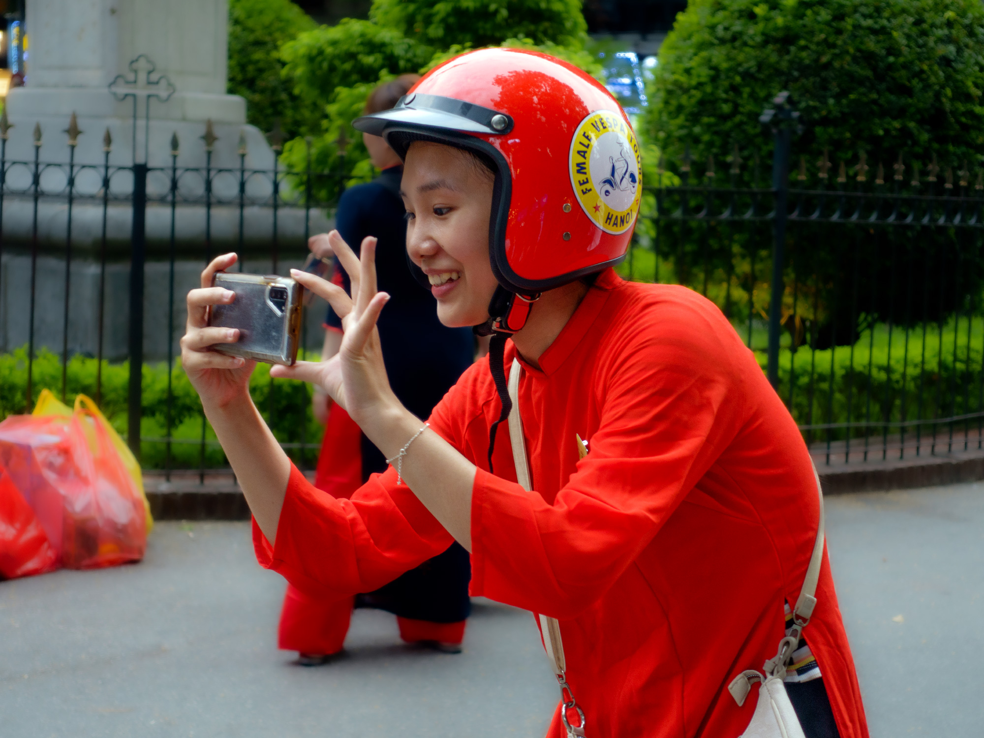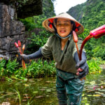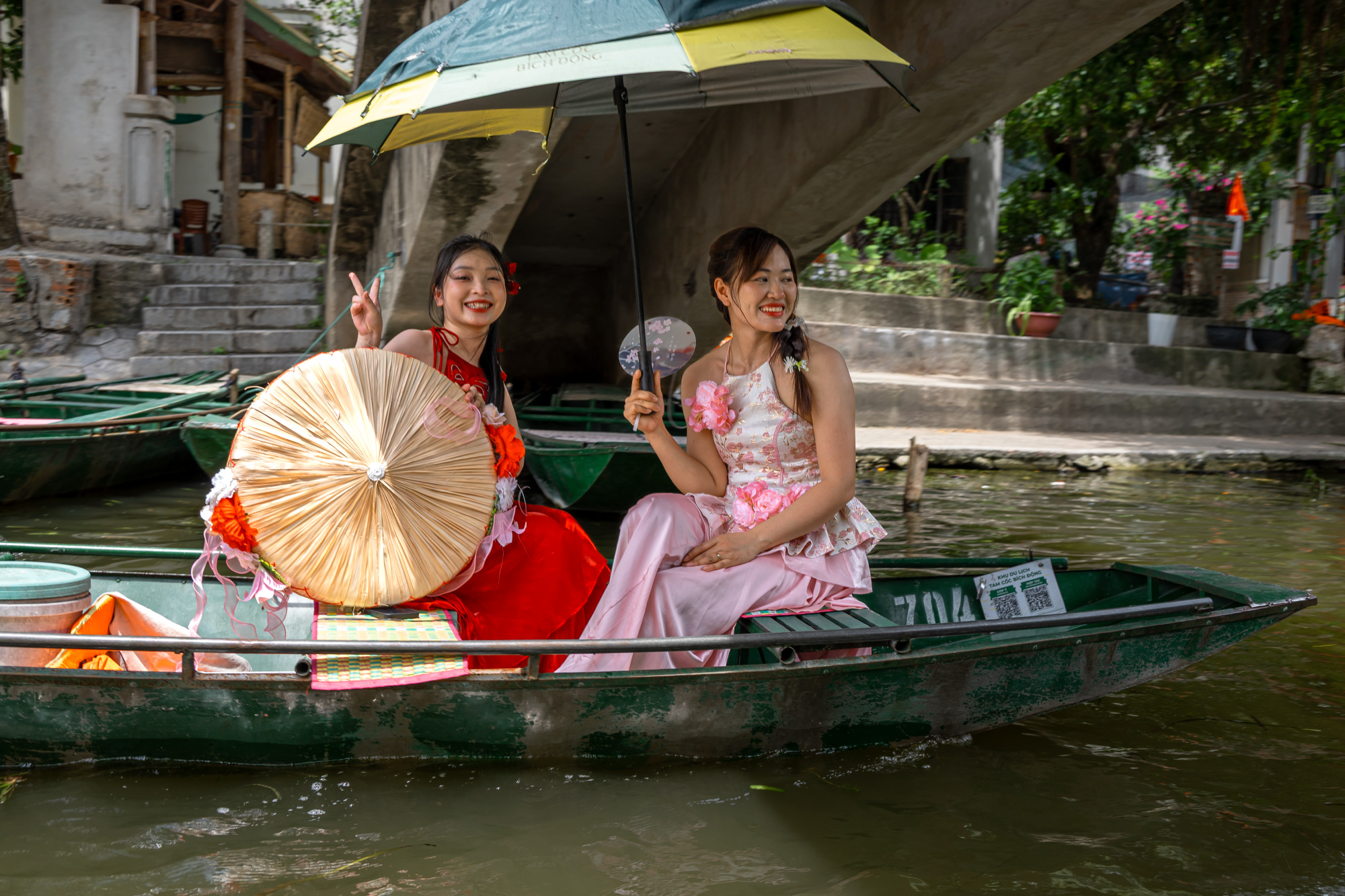 3- Et puis, il y a les interminables séances photos dans les vastes étendues de lotus du lac Hô Hoàn Kièm Hanoï ou à Hang Mua à Ninh Binh. Cela relève de l’institution ! Tout comme je l’ai signalé au Wat Arun de Bangkok, les belles viennent prendre des poses parmi les magnifiques lotus, dûment maquillées et bijoutées, dans de somptueux habits traditionnels, souvent loués pour la circonstance et souvent accompagnées de photographes professionnels. Et là, pendant des heures elles prennent des poses, des poses et… des poses. Comment ne pas profiter de l’aubaine !