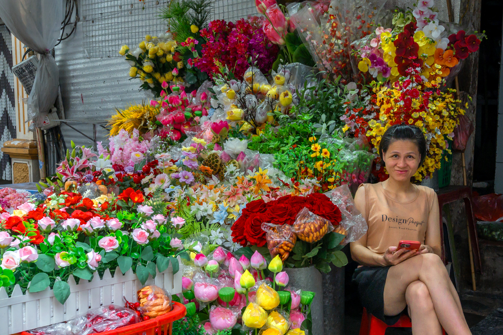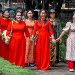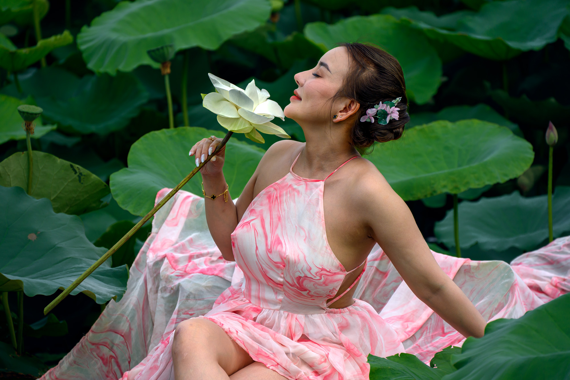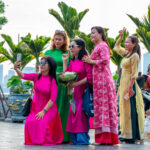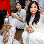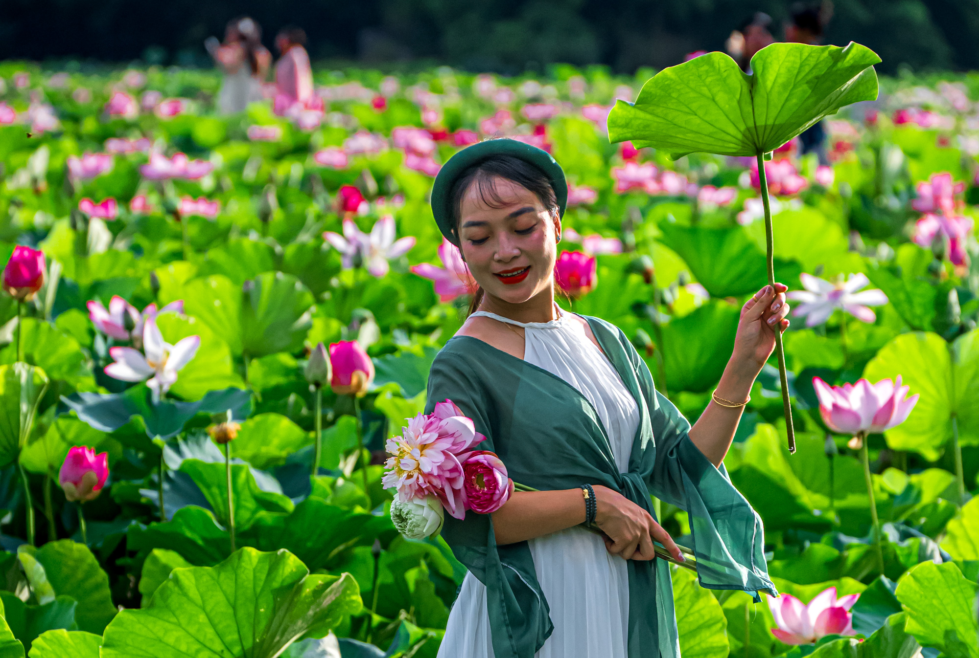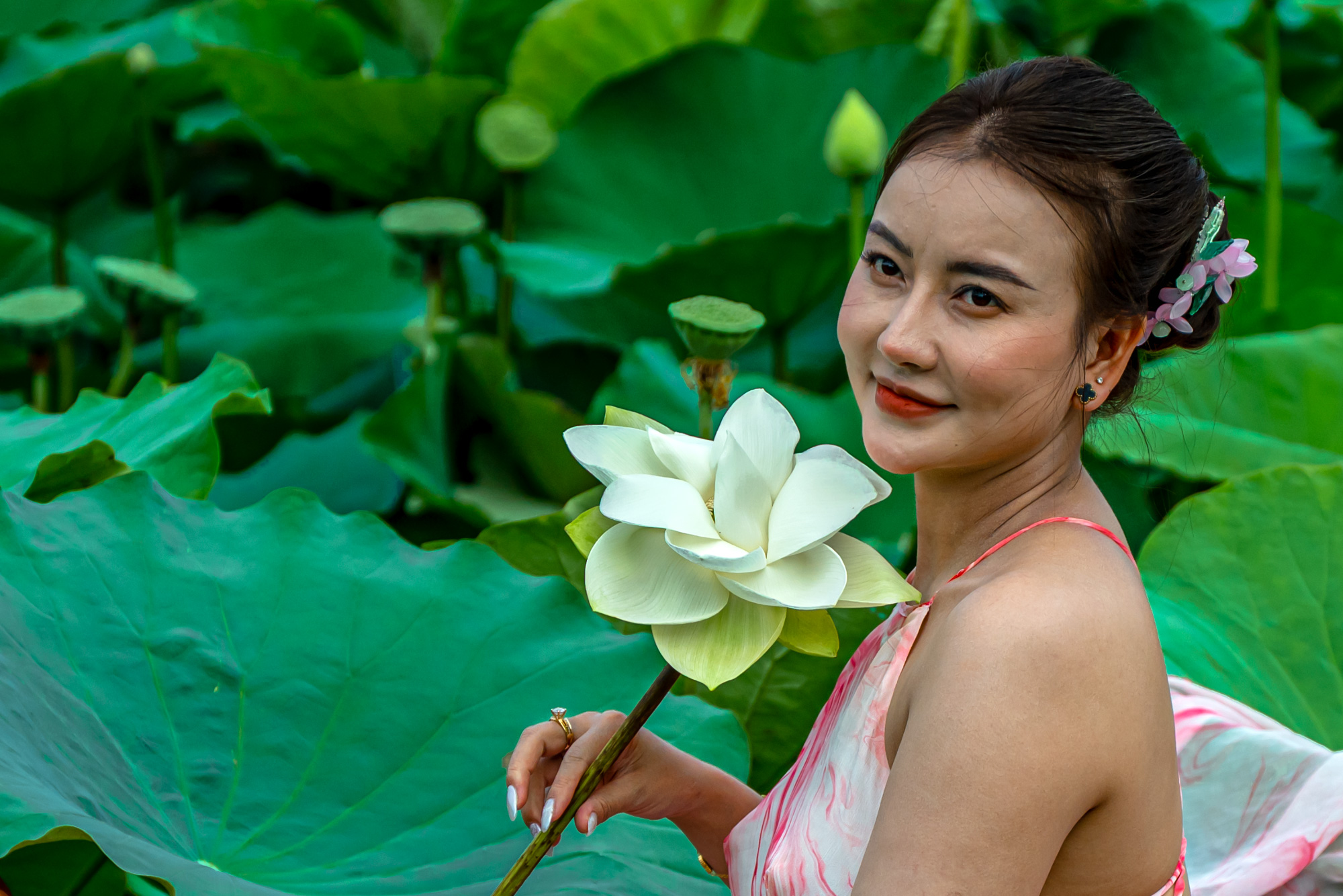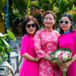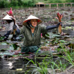 3- Et puis, il y a les interminables séances photos dans les vastes étendues de lotus du lac Hô Hoàn Kièm Hanoï ou à Hang Mua à Ninh Binh. Cela relève de l’institution ! Tout comme je l’ai signalé au Wat Arun de Bangkok, les belles viennent prendre des poses parmi les magnifiques lotus, dûment maquillées et bijoutées, dans de somptueux habits traditionnels, souvent loués pour la circonstance et souvent accompagnées de photographes professionnels. Et là, pendant des heures elles prennent des poses, des poses et… des poses. Comment ne pas profiter de l’aubaine !