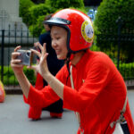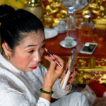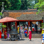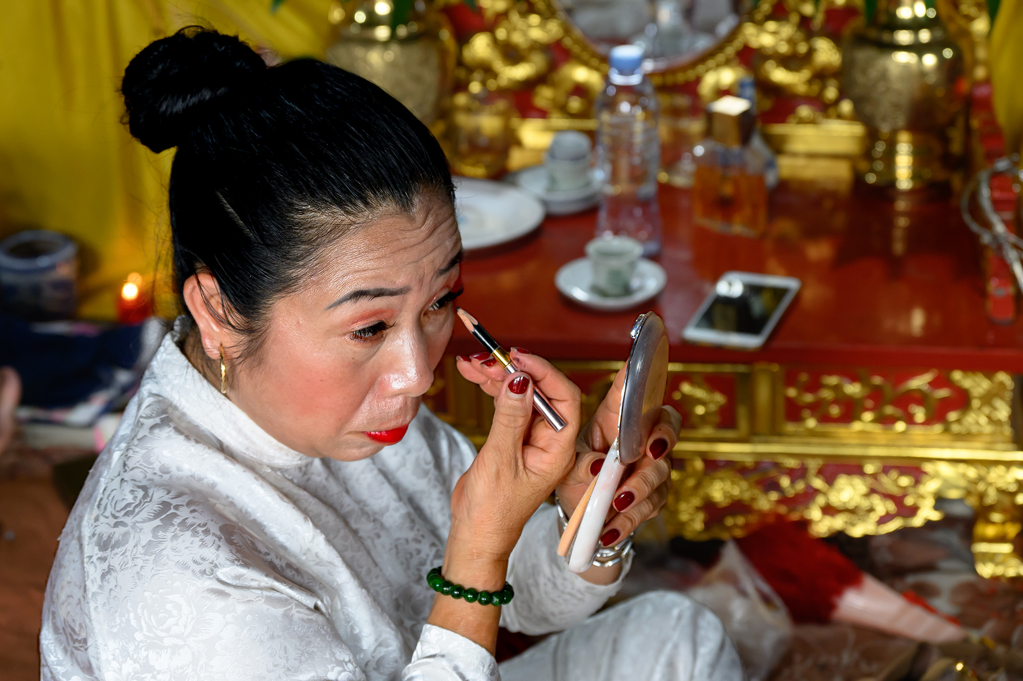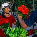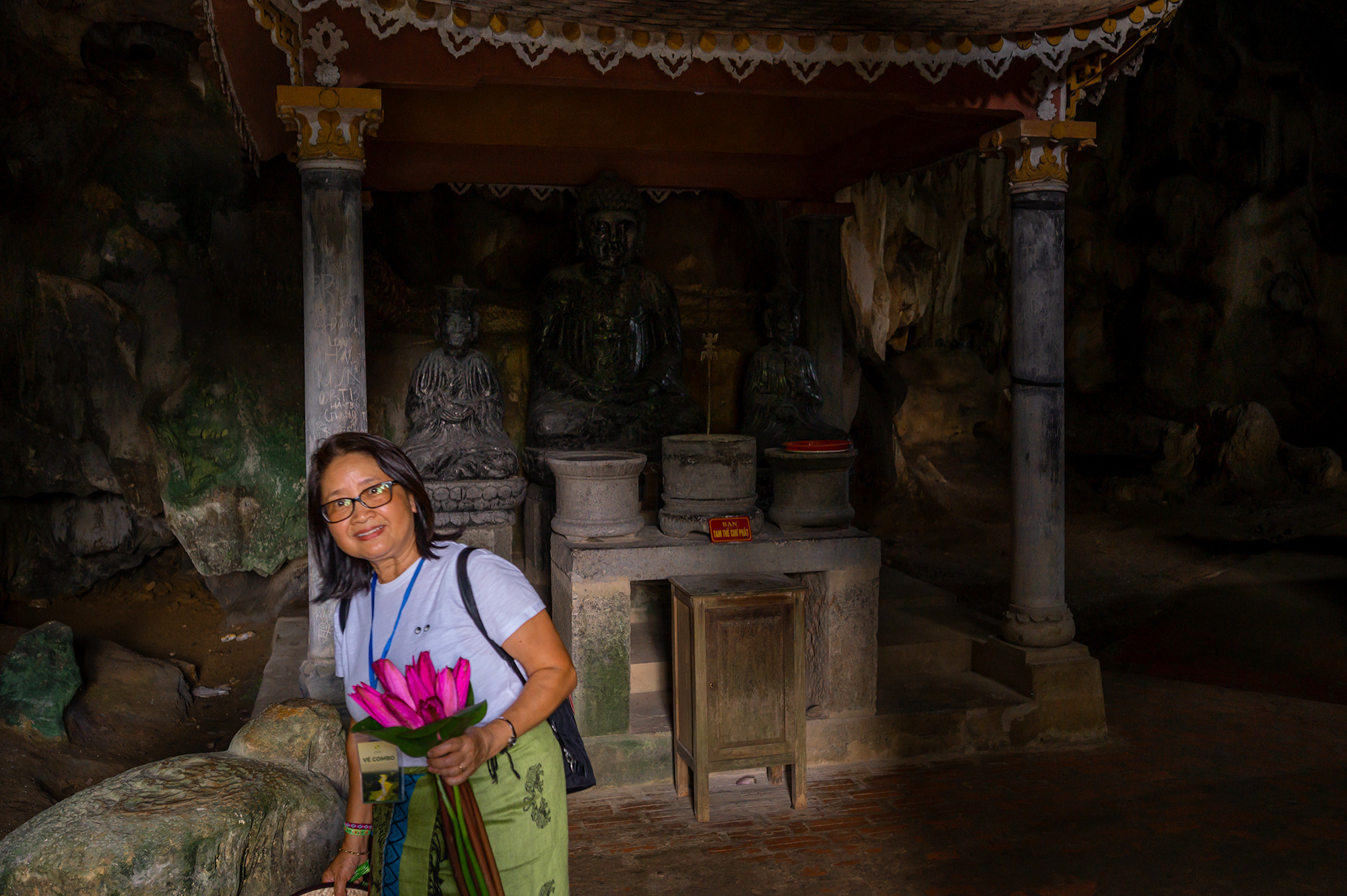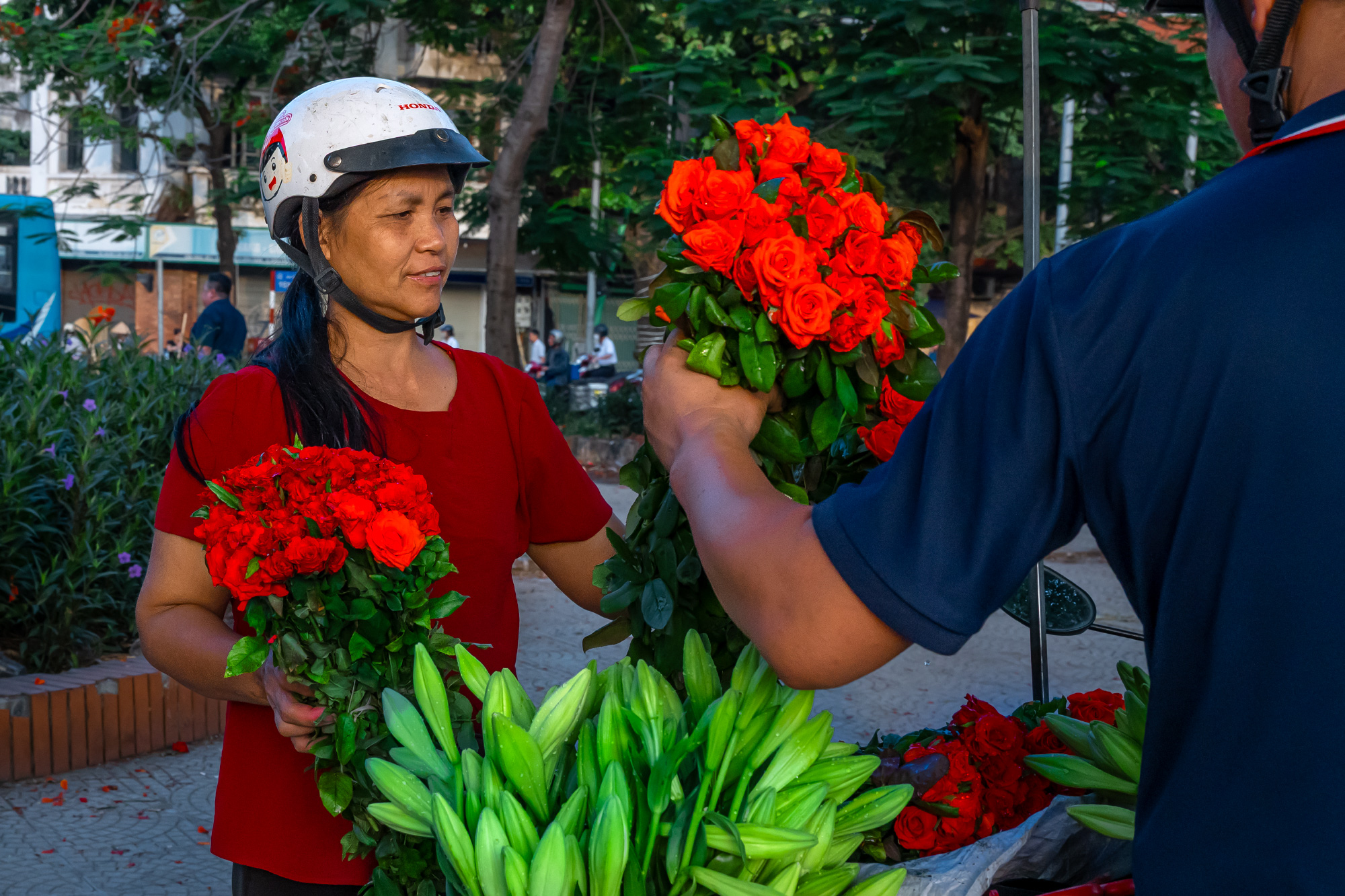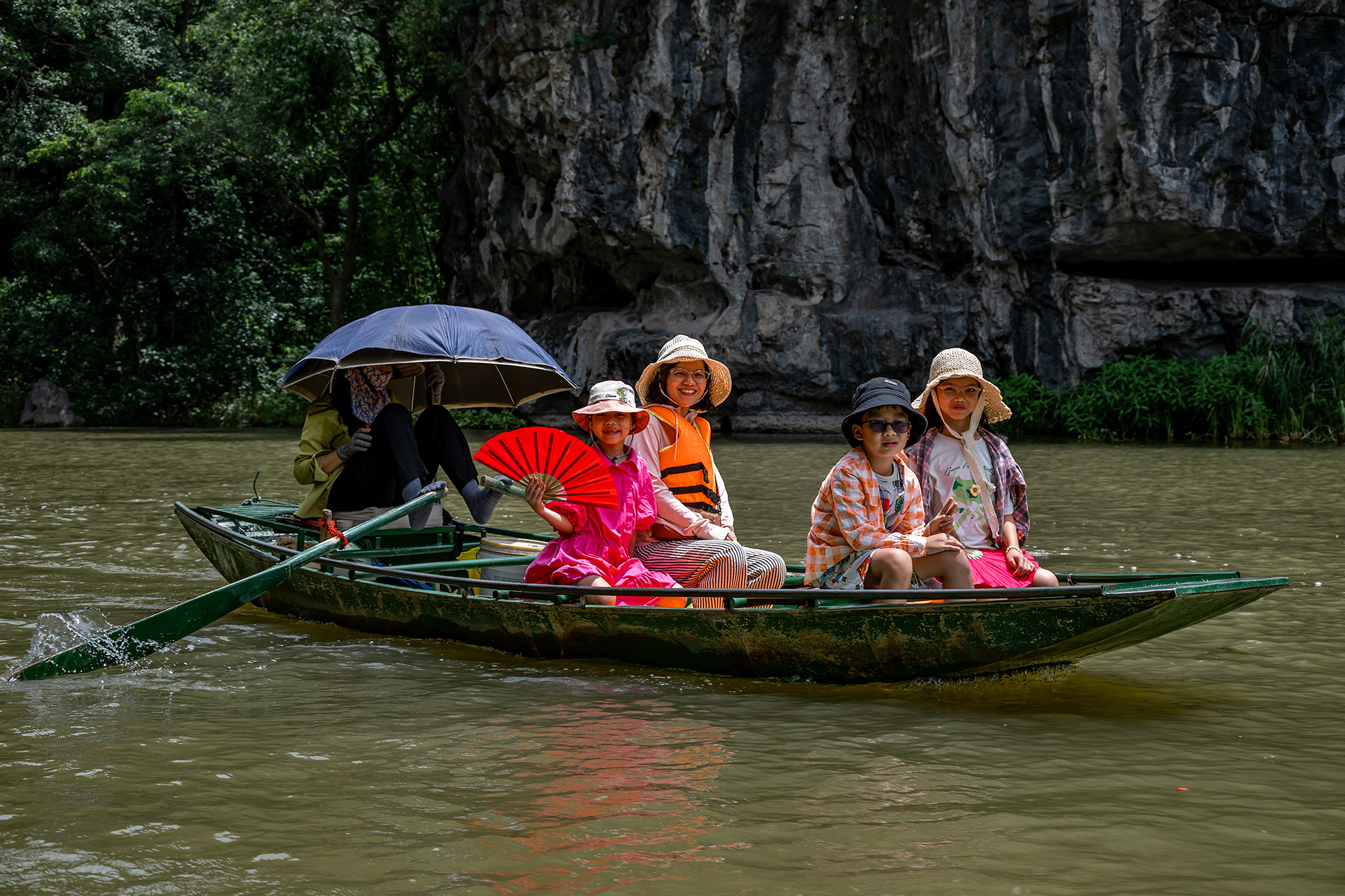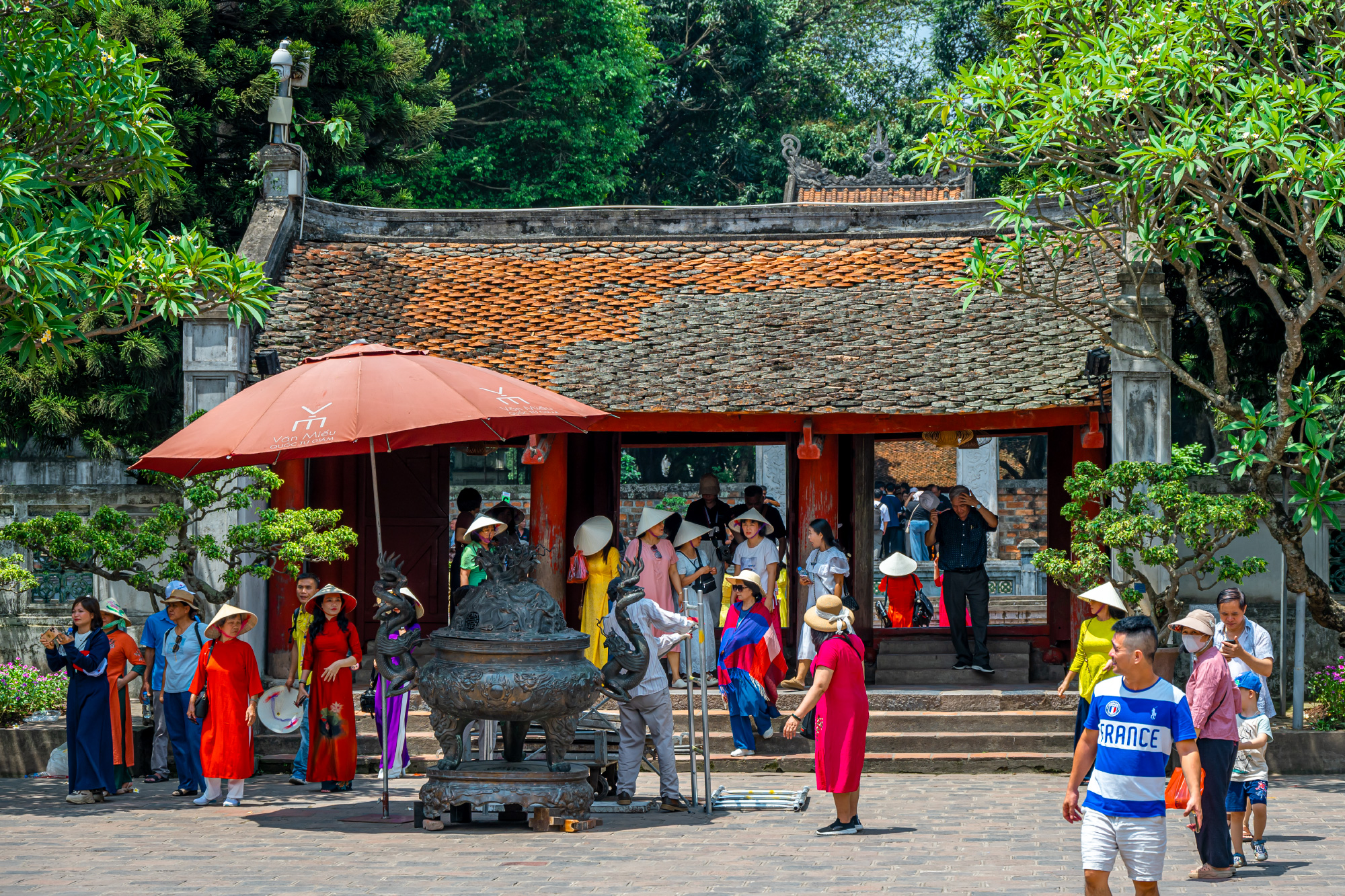 3- Et puis, il y a les interminables séances photos dans les vastes étendues de lotus du lac Hô Hoàn Kièm Hanoï ou à Hang Mua à Ninh Binh. Cela relève de l’institution ! Tout comme je l’ai signalé au Wat Arun de Bangkok, les belles viennent prendre des poses parmi les magnifiques lotus, dûment maquillées et bijoutées, dans de somptueux habits traditionnels, souvent loués pour la circonstance et souvent accompagnées de photographes professionnels. Et là, pendant des heures elles prennent des poses, des poses et… des poses. Comment ne pas profiter de l’aubaine !