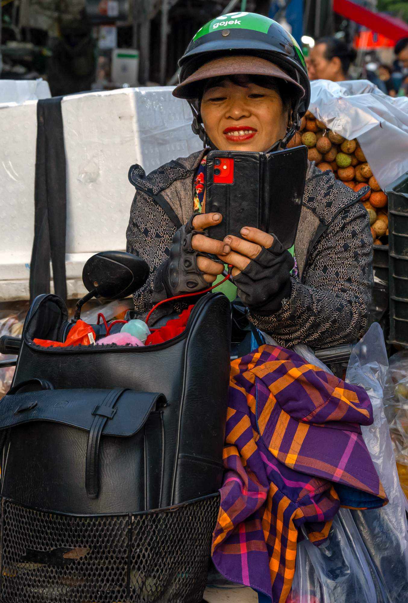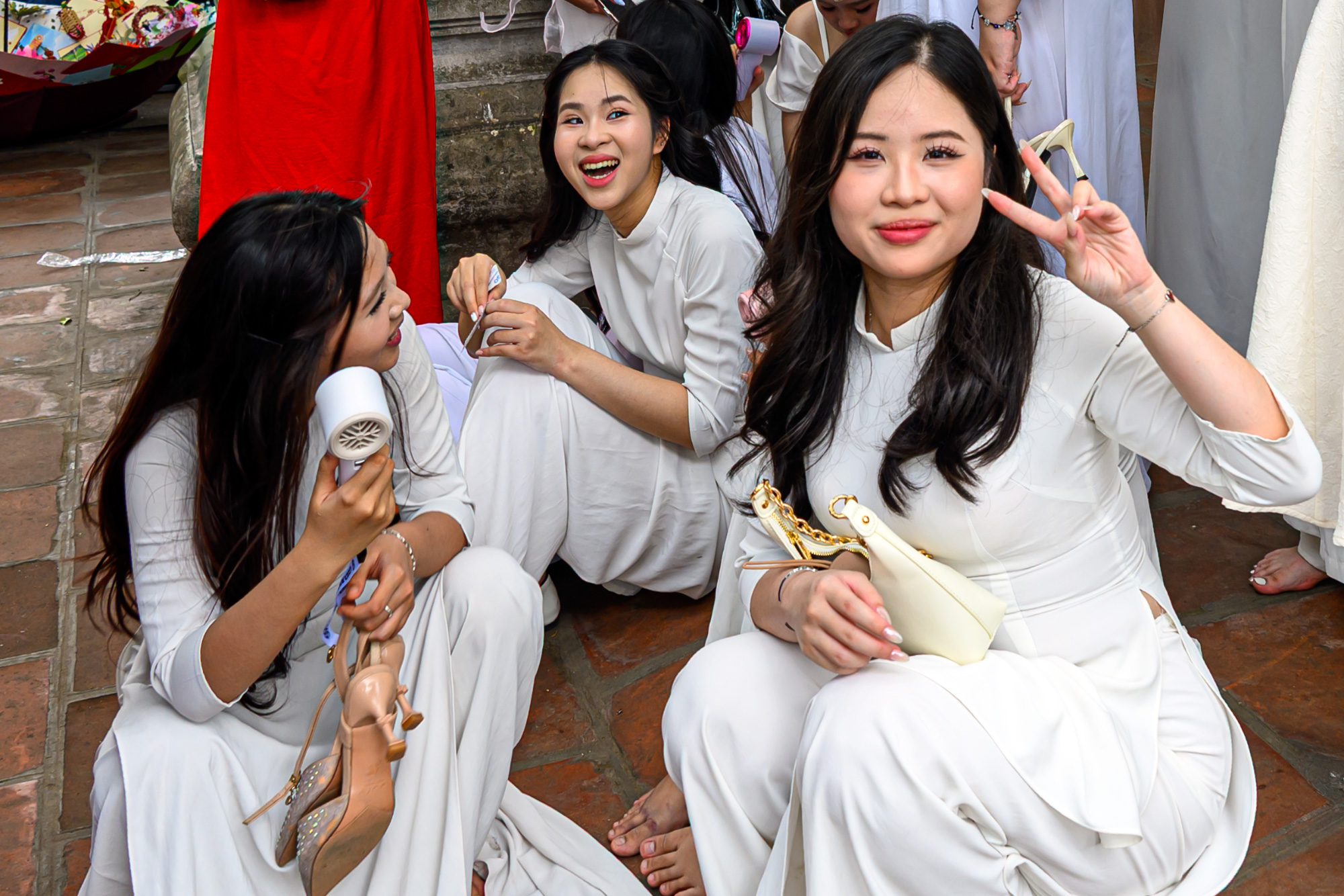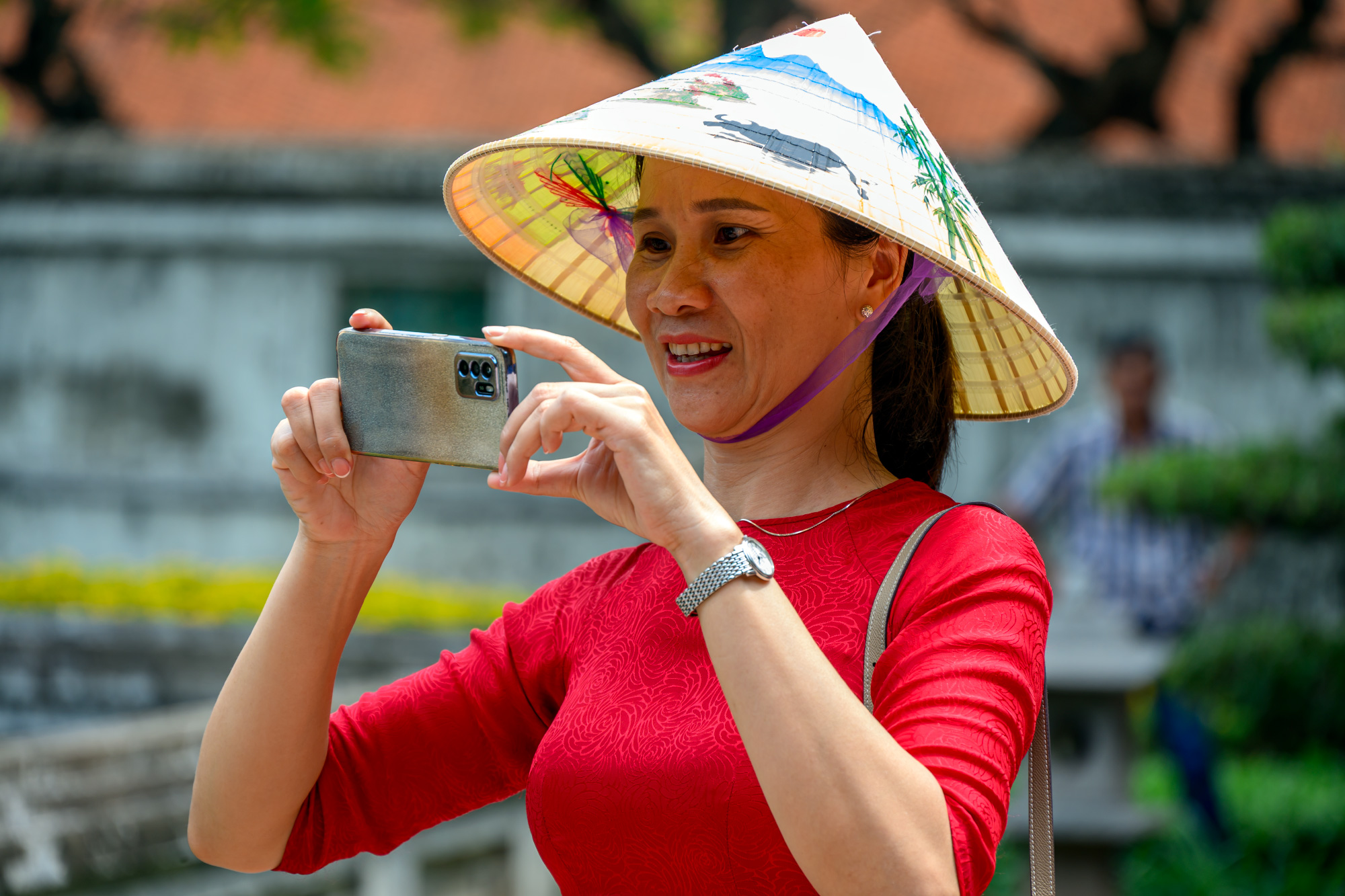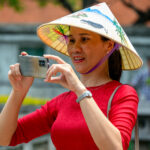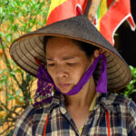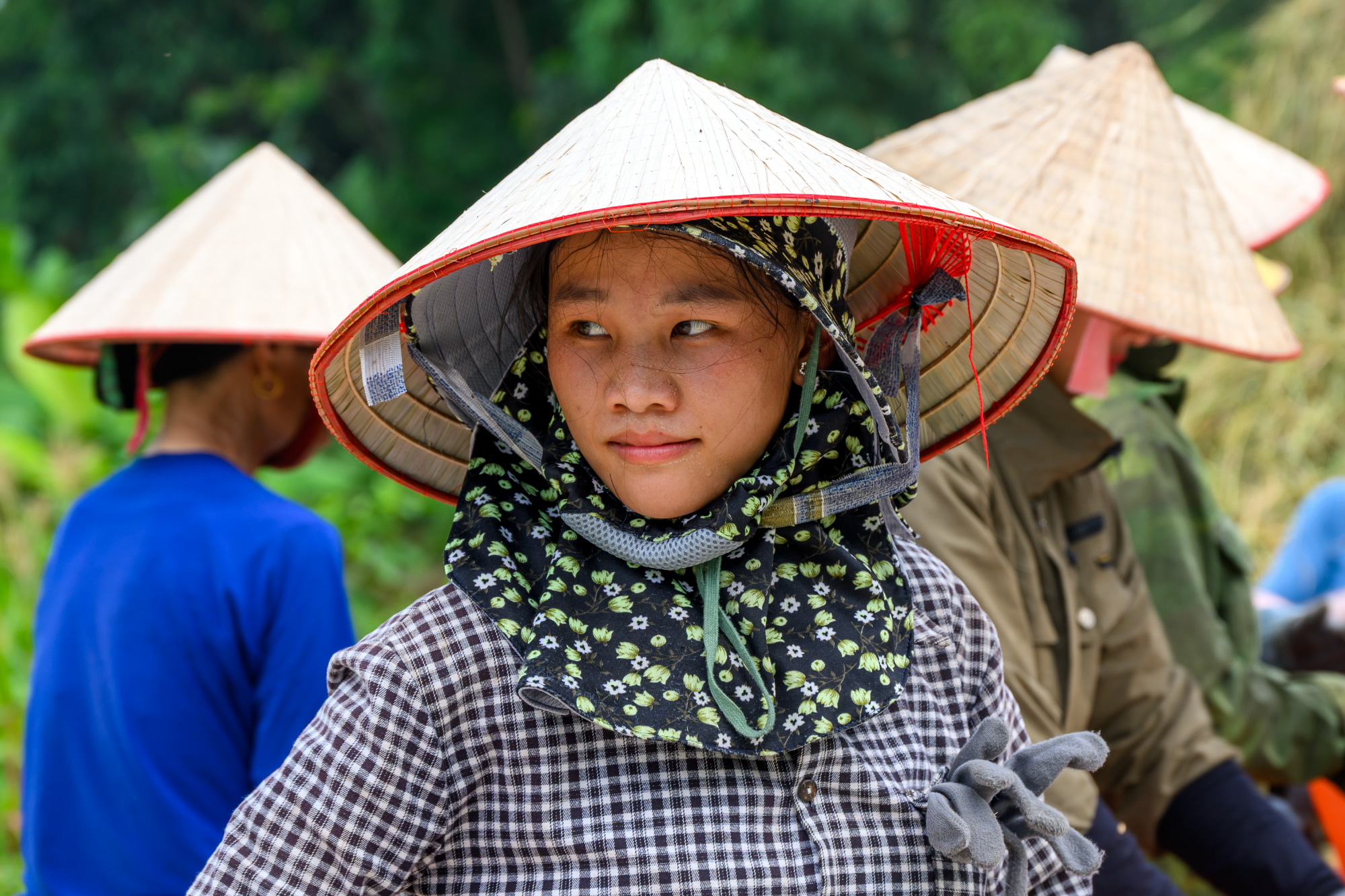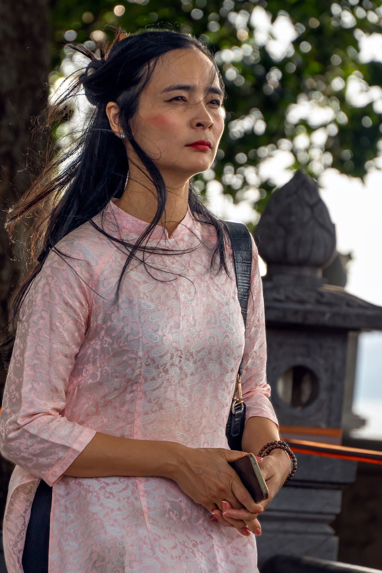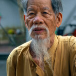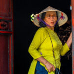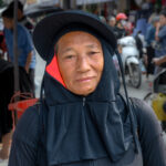 Et puis il y a l’élégance du áo dài, cette robe longue fendue sur le côté, qui épouse la silhouette sans jamais la dévoiler totalement. Elle sublime la finesse des formes, en exaltant la dignité, la retenue et la grâce féminine — une beauté à la fois visible et suggérée. Et ses couleurs franches qui ont l’art de composer avec les ombres, guettées par le photographe. Cependant la plupart de mes visages sont des visages de travailleurs.Travailleuses surtout, et si industrieuses, ces femmes vietnamiennes !