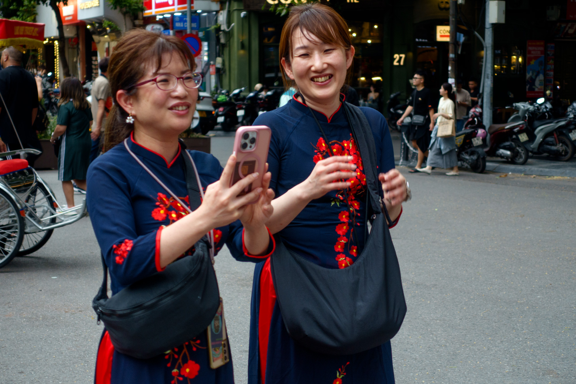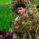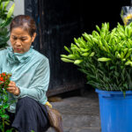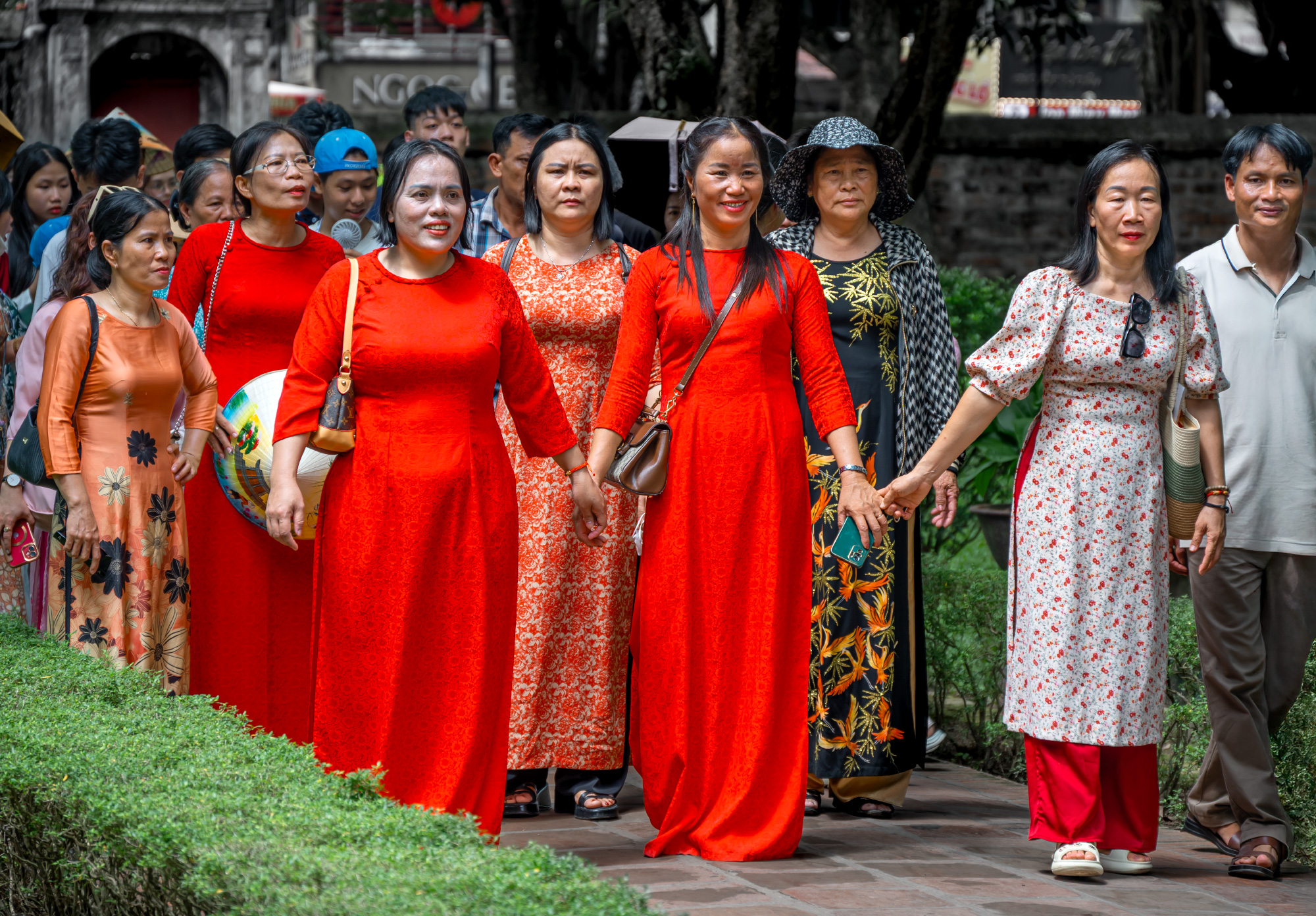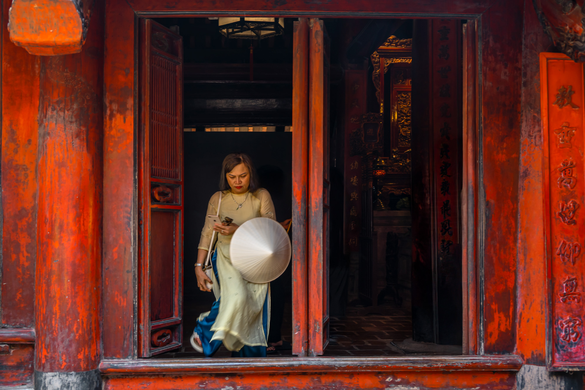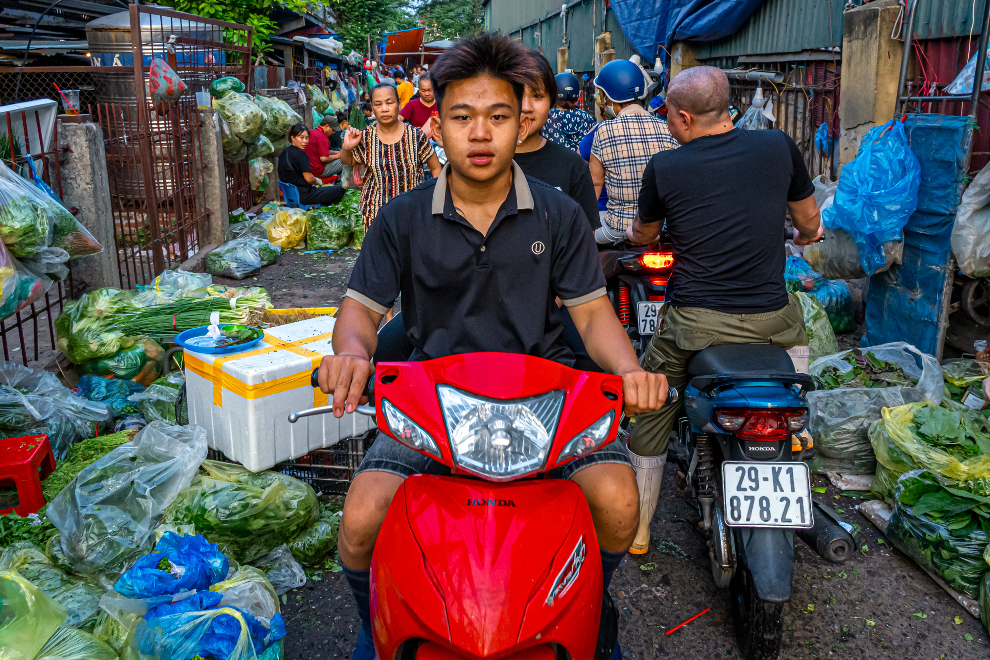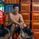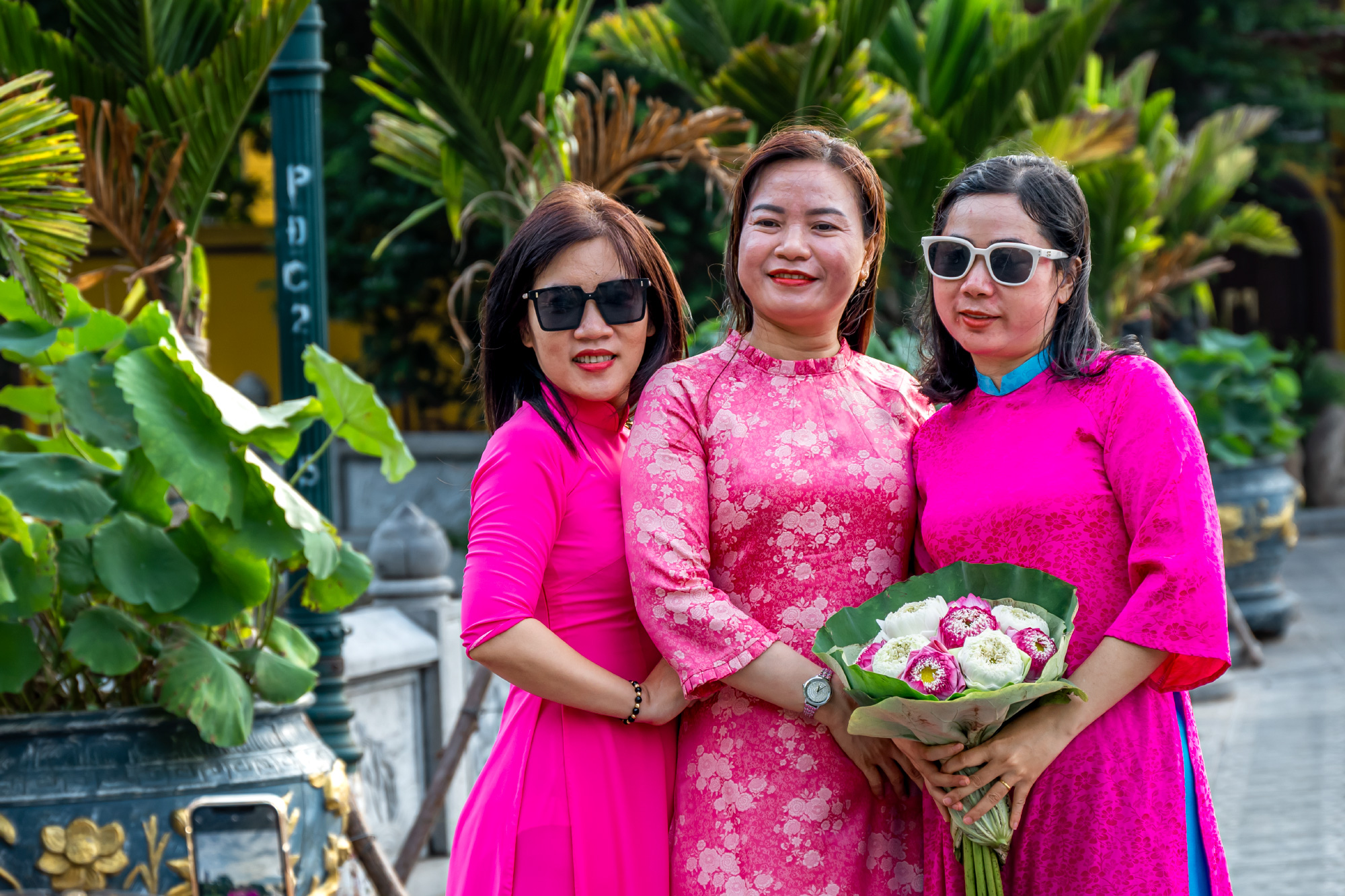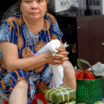 Et puis il y a l’élégance du áo dài, cette robe longue fendue sur le côté, qui épouse la silhouette sans jamais la dévoiler totalement. Elle sublime la finesse des formes, en exaltant la dignité, la retenue et la grâce féminine — une beauté à la fois visible et suggérée. Et ses couleurs franches qui ont l’art de composer avec les ombres, guettées par le photographe. Cependant la plupart de mes visages sont des visages de travailleurs.Travailleuses surtout, et si industrieuses, ces femmes vietnamiennes !