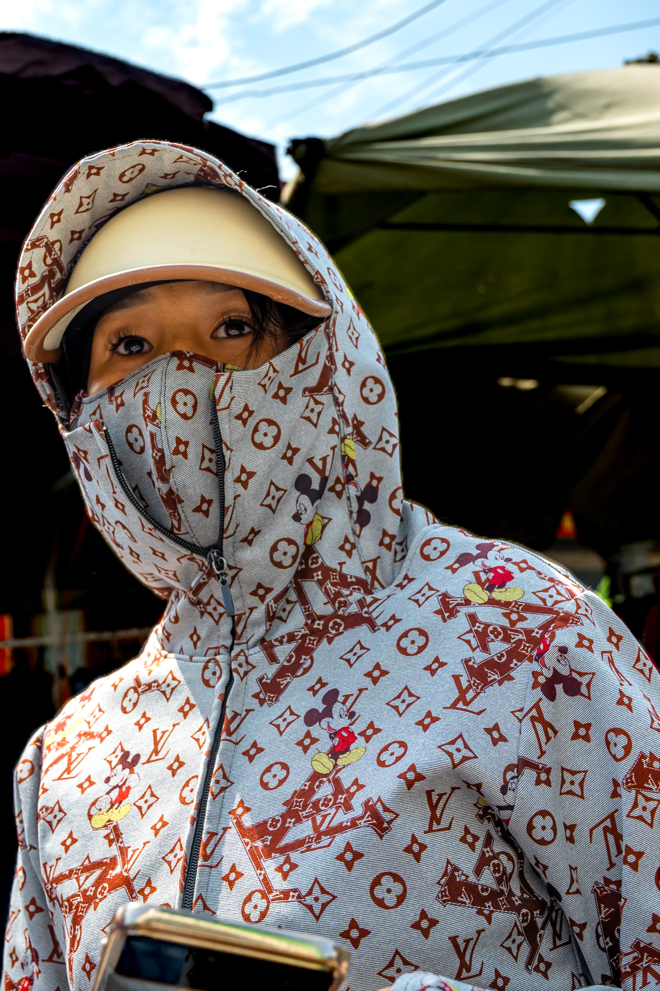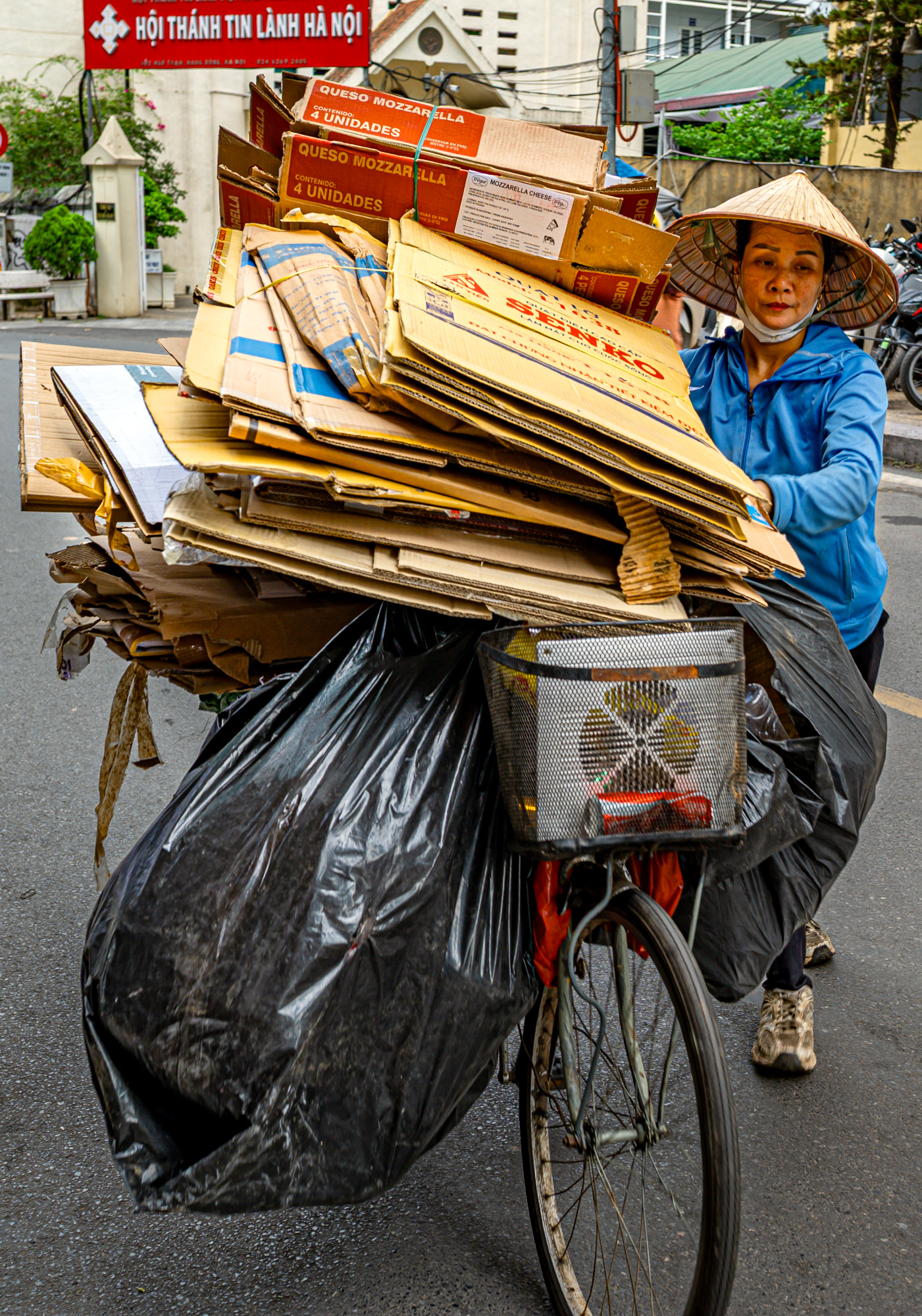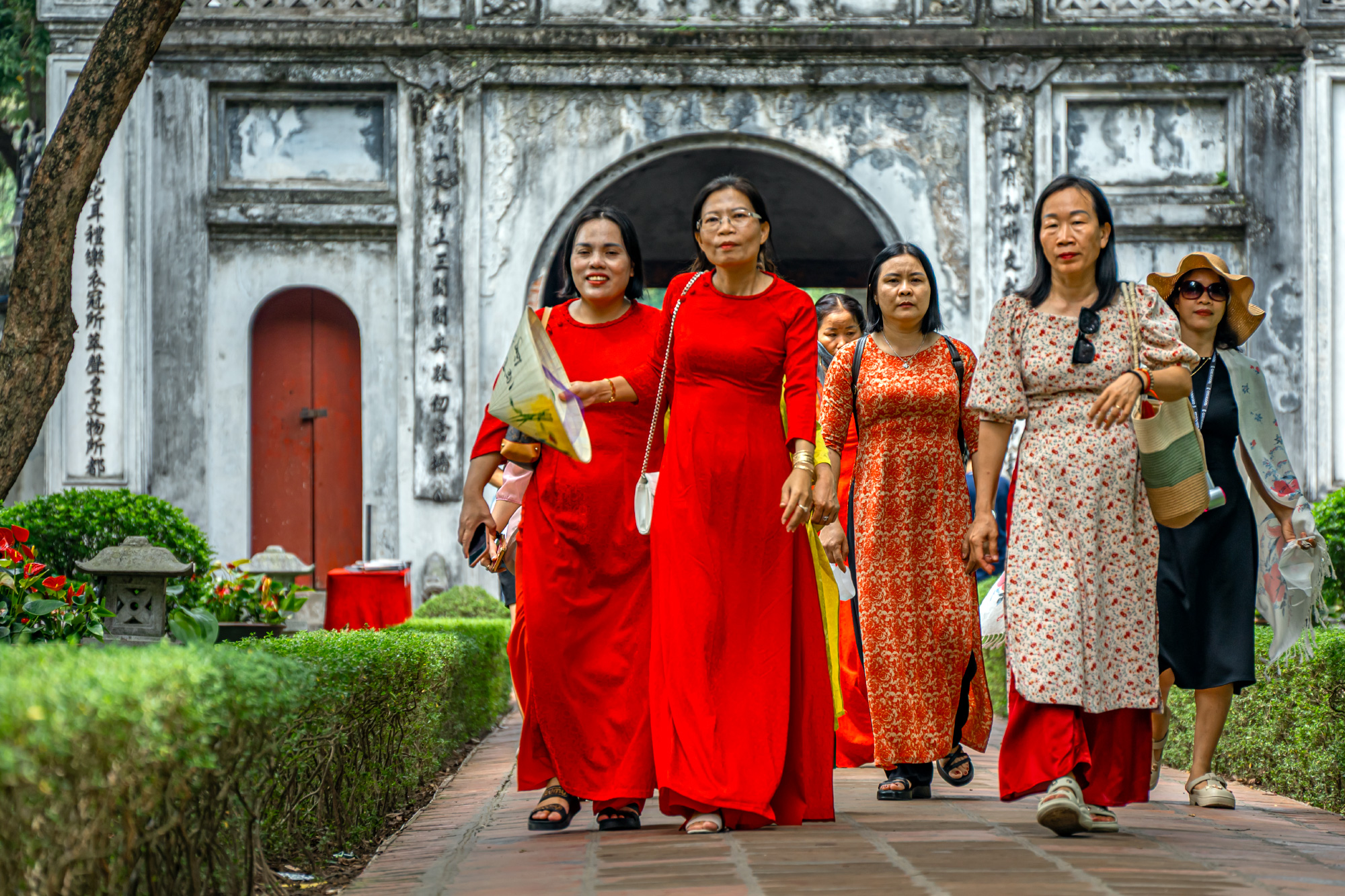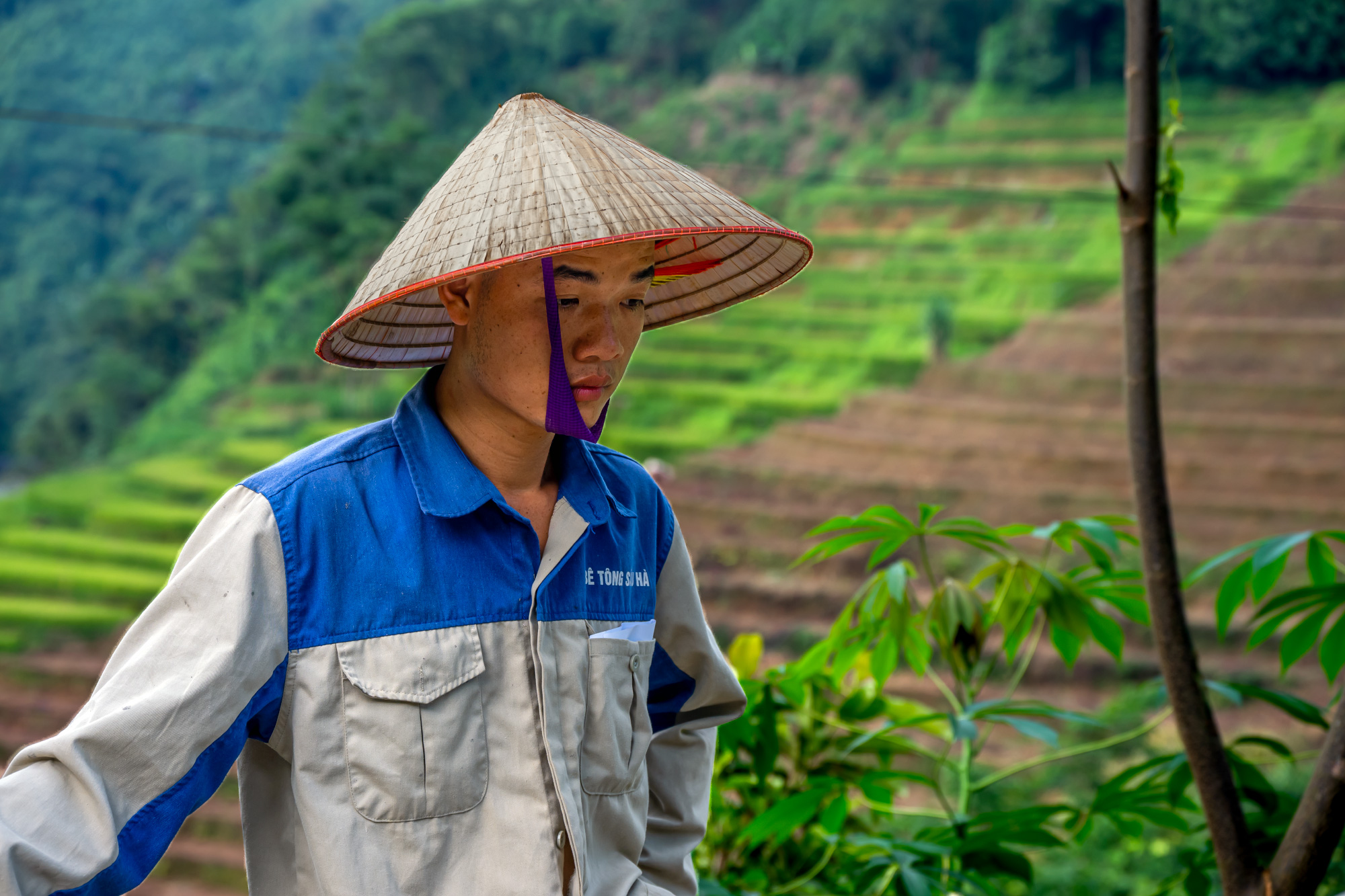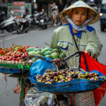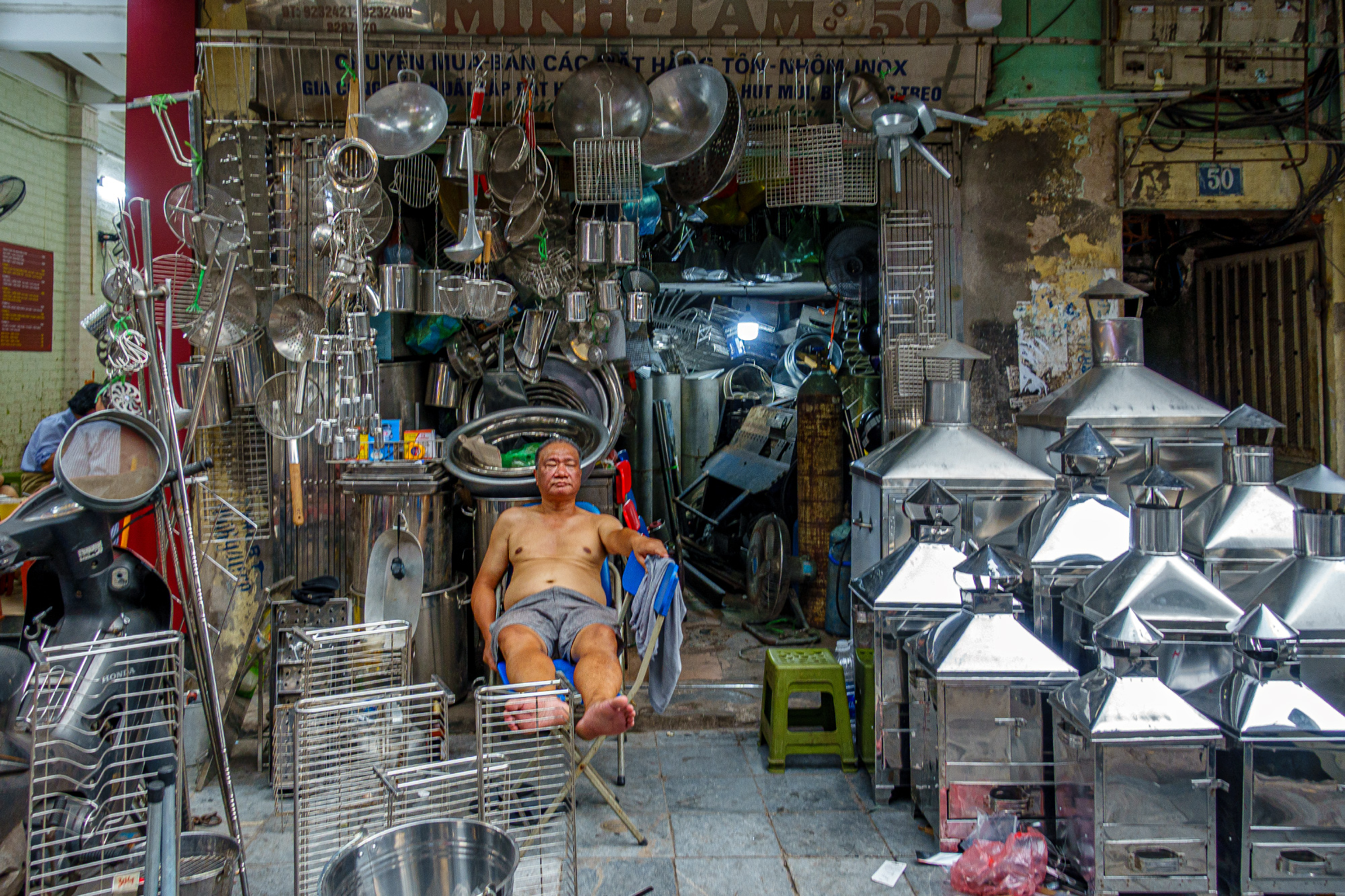 Et puis il y a l’élégance du áo dài, cette robe longue fendue sur le côté, qui épouse la silhouette sans jamais la dévoiler totalement. Elle sublime la finesse des formes, en exaltant la dignité, la retenue et la grâce féminine — une beauté à la fois visible et suggérée. Et ses couleurs franches qui ont l’art de composer avec les ombres, guettées par le photographe. Cependant la plupart de mes visages sont des visages de travailleurs.Travailleuses surtout, et si industrieuses, ces femmes vietnamiennes !
