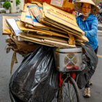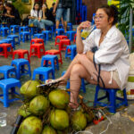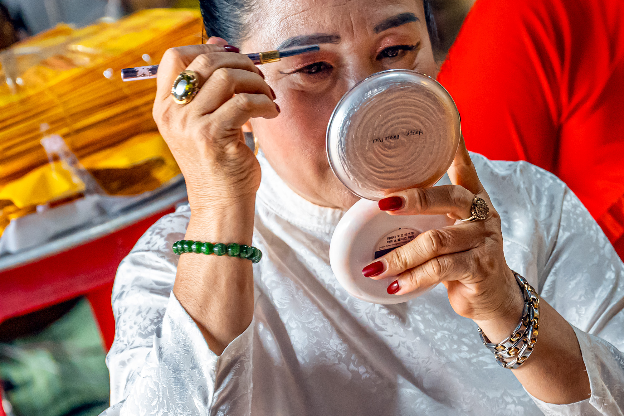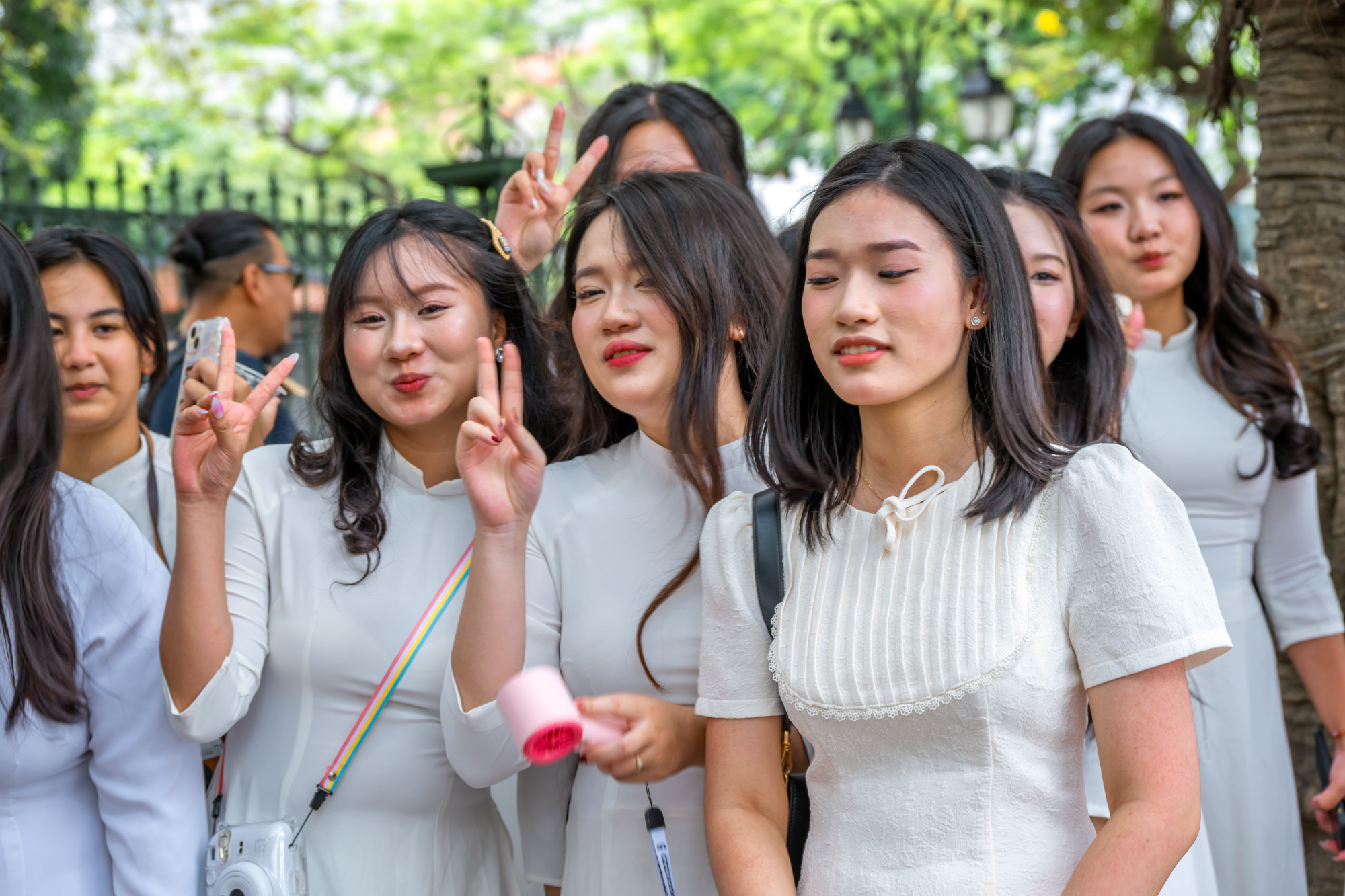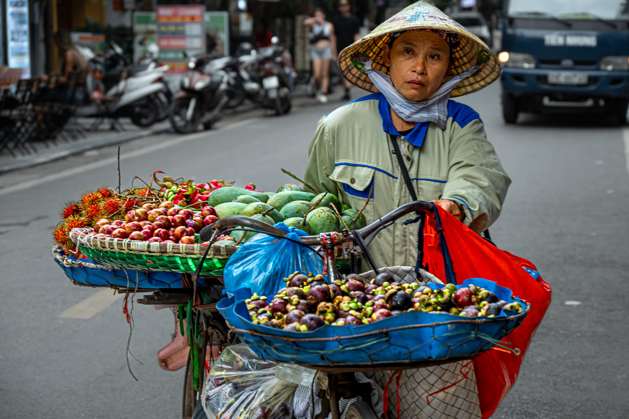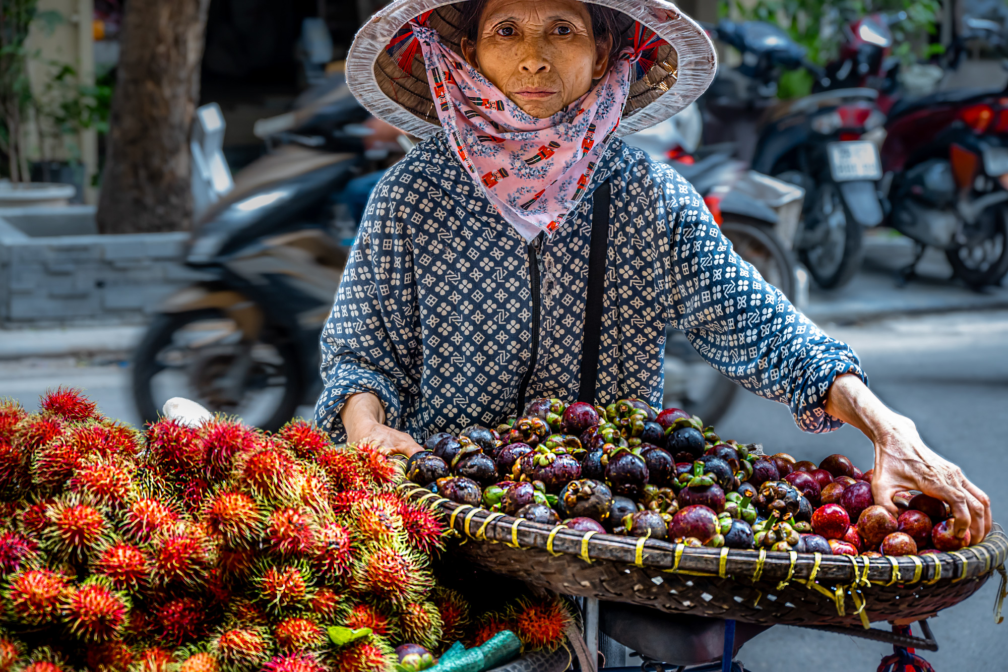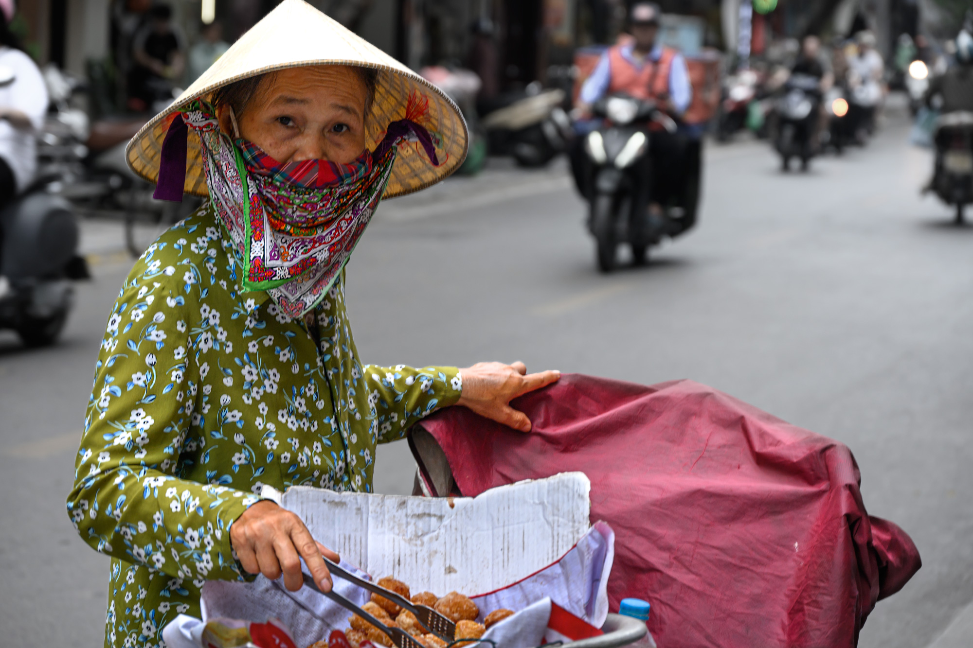 Et puis il y a l’élégance du áo dài, cette robe longue fendue sur le côté, qui épouse la silhouette sans jamais la dévoiler totalement. Elle sublime la finesse des formes, en exaltant la dignité, la retenue et la grâce féminine — une beauté à la fois visible et suggérée. Et ses couleurs franches qui ont l’art de composer avec les ombres, guettées par le photographe. Cependant la plupart de mes visages sont des visages de travailleurs.Travailleuses surtout, et si industrieuses, ces femmes vietnamiennes !