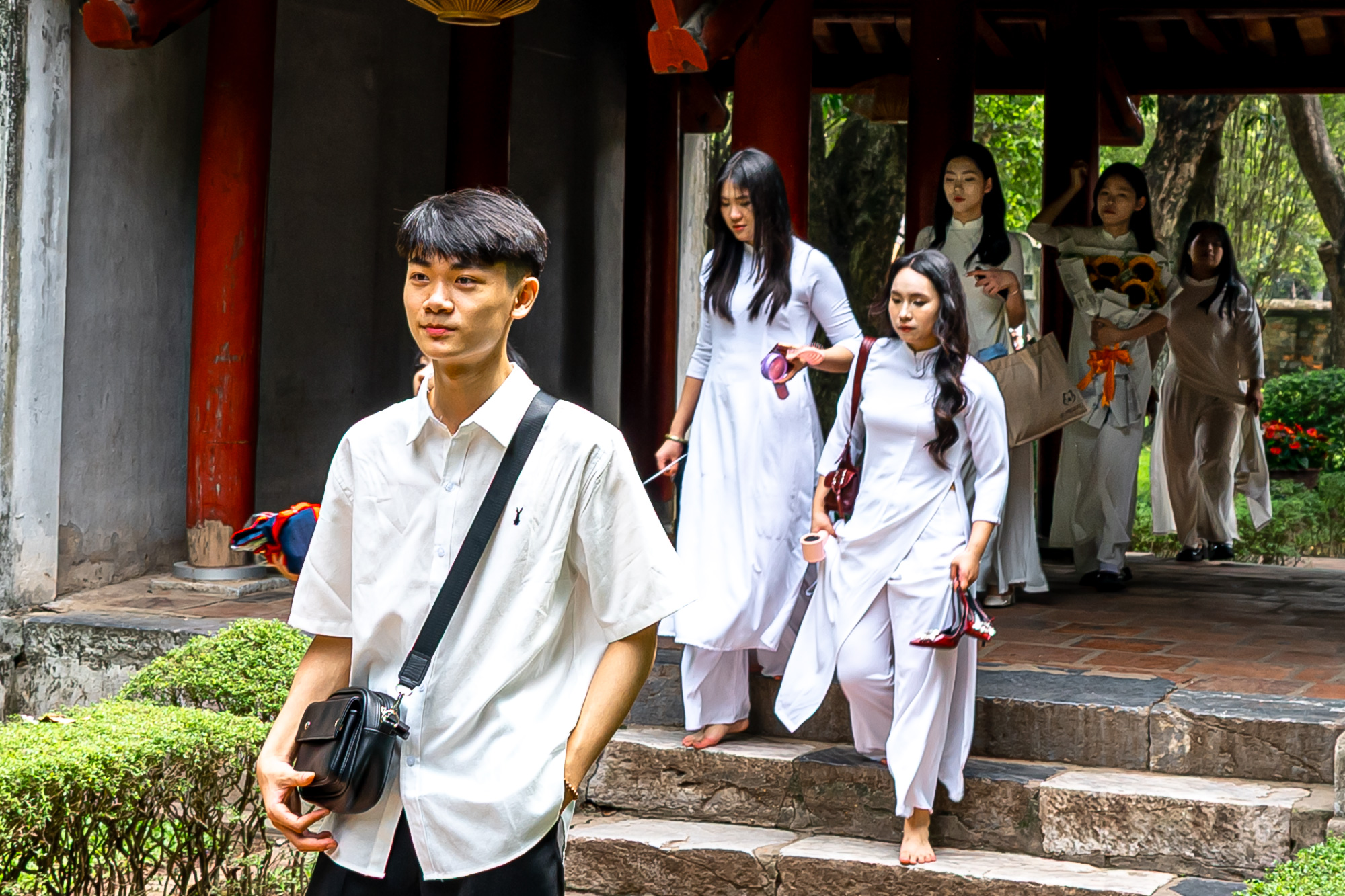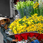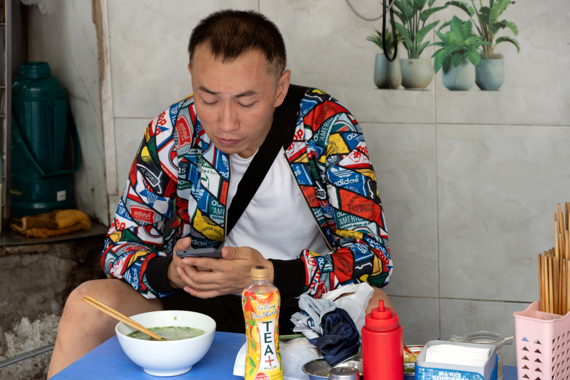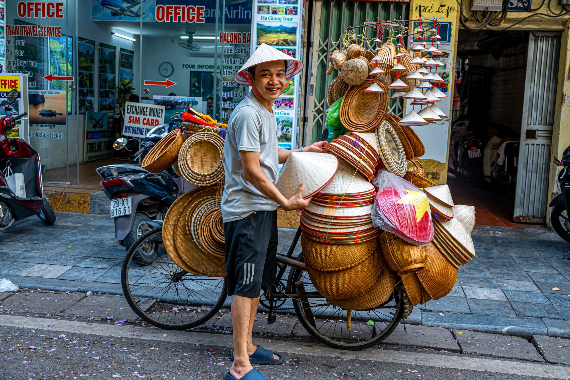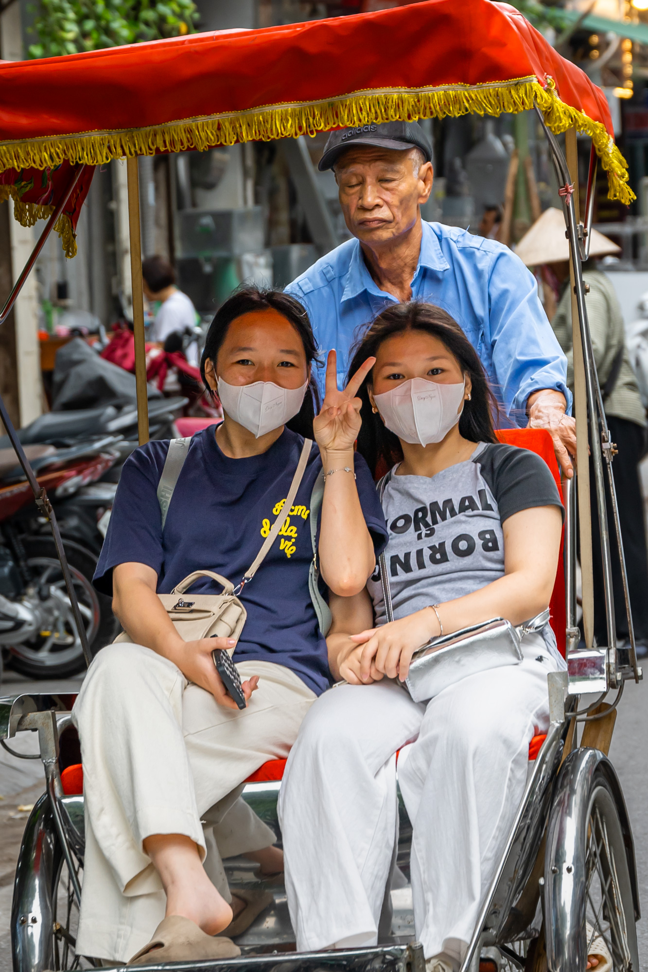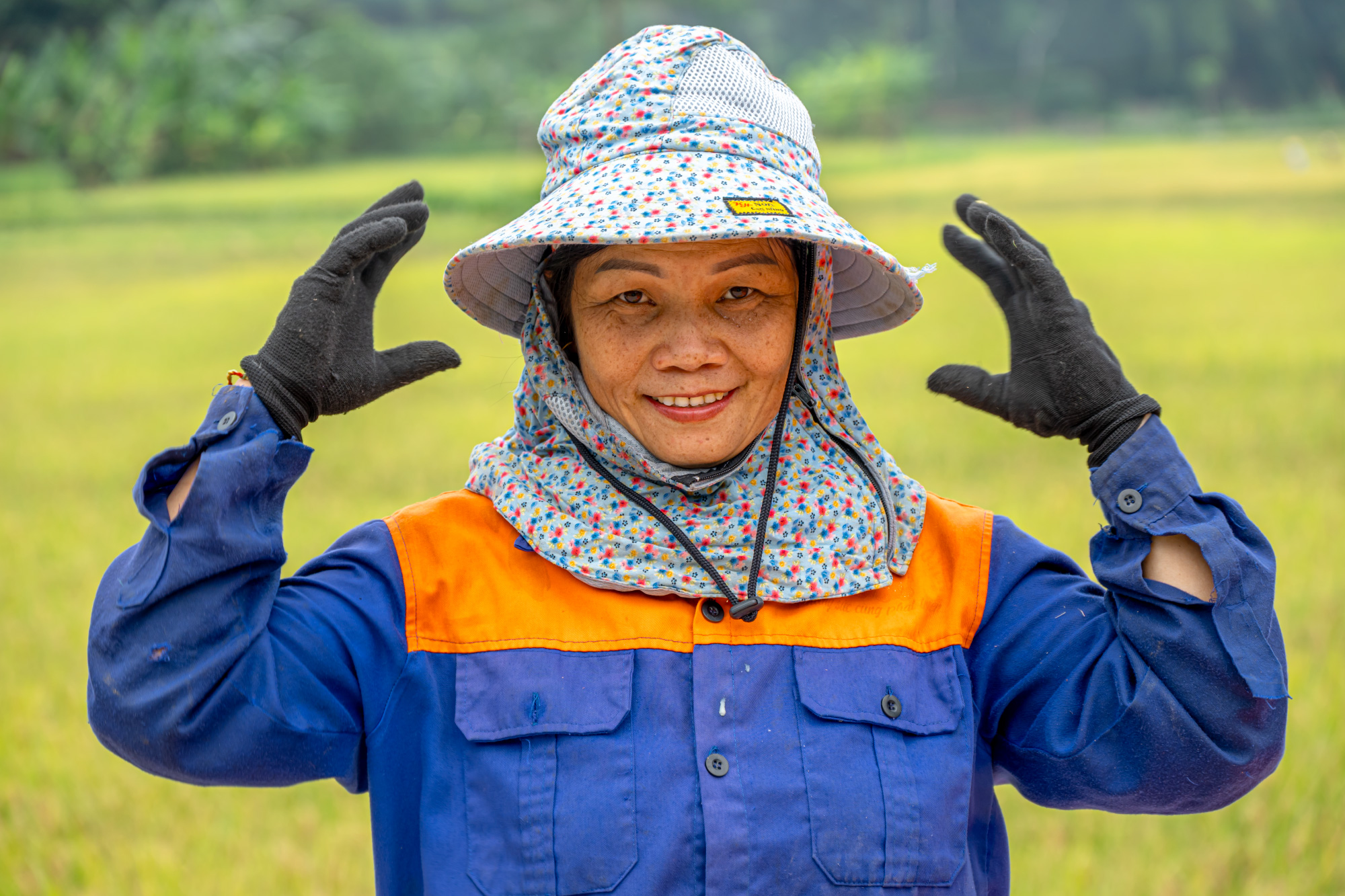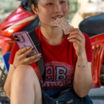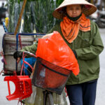 Et puis il y a l’élégance du áo dài, cette robe longue fendue sur le côté, qui épouse la silhouette sans jamais la dévoiler totalement. Elle sublime la finesse des formes, en exaltant la dignité, la retenue et la grâce féminine — une beauté à la fois visible et suggérée. Et ses couleurs franches qui ont l’art de composer avec les ombres, guettées par le photographe. Cependant la plupart de mes visages sont des visages de travailleurs.Travailleuses surtout, et si industrieuses, ces femmes vietnamiennes !