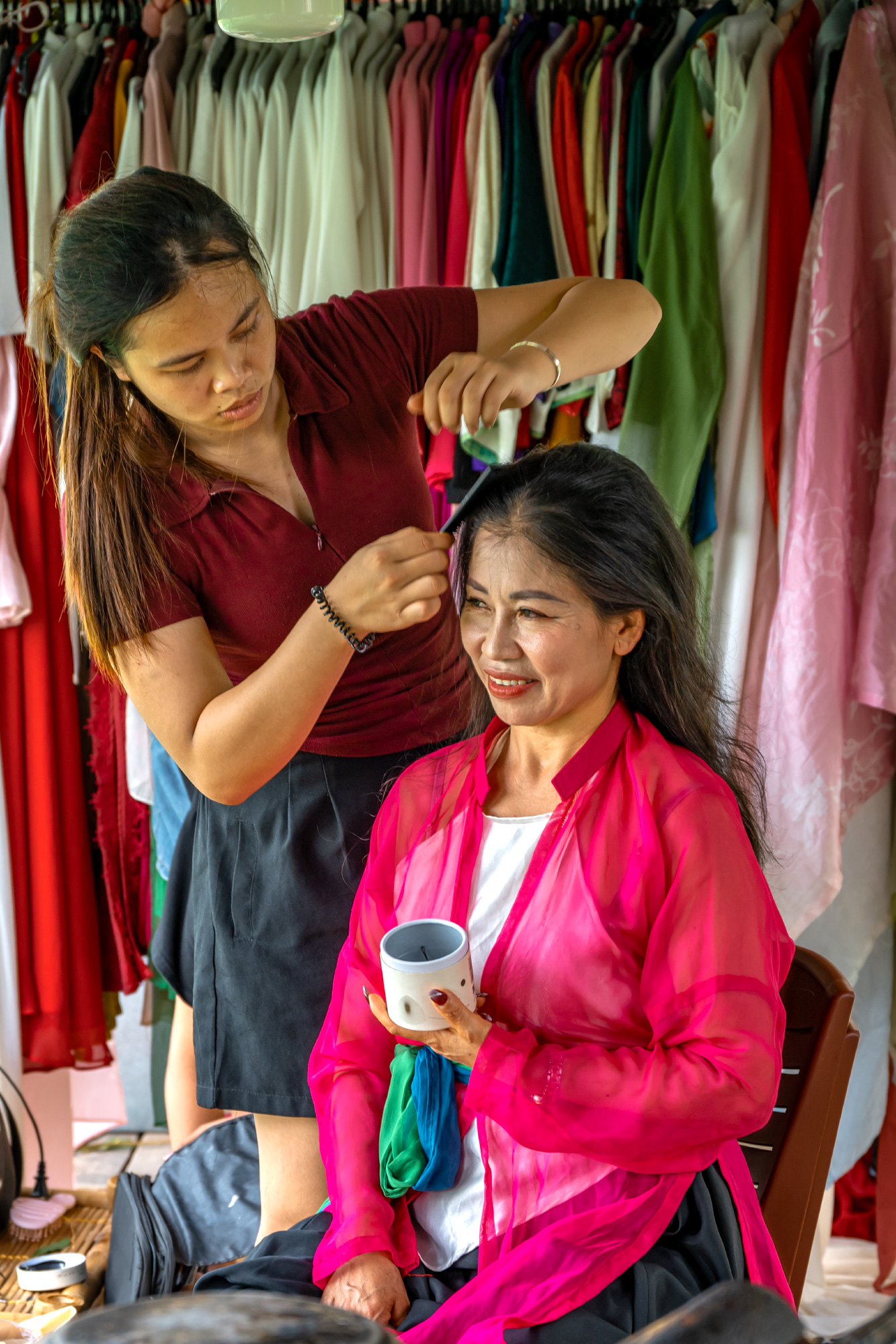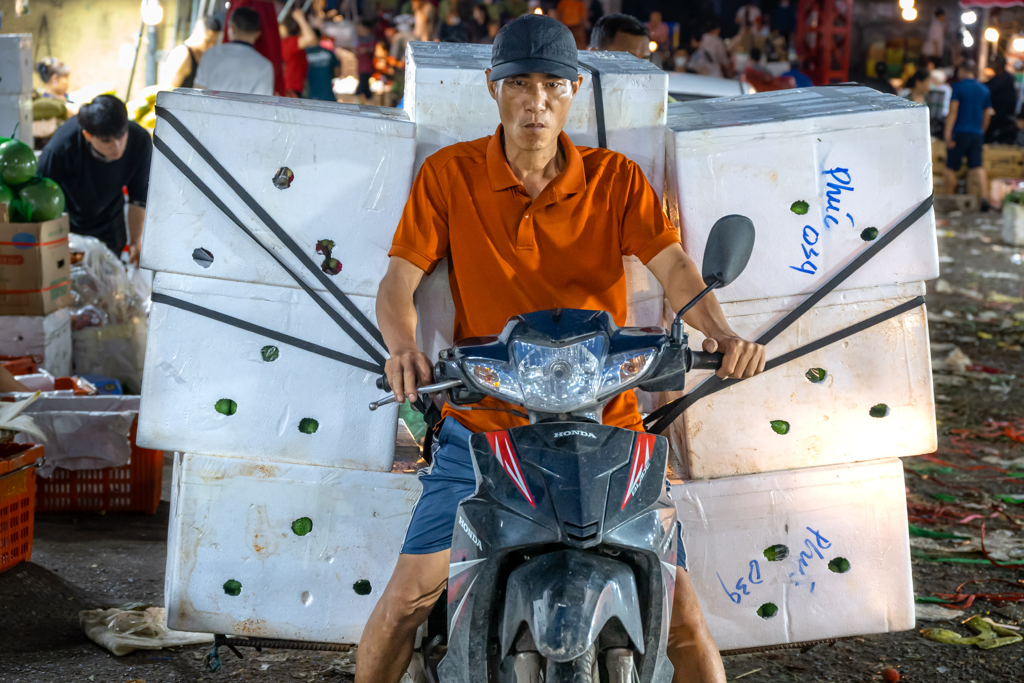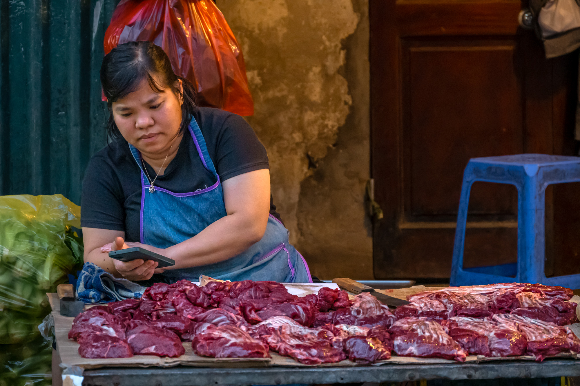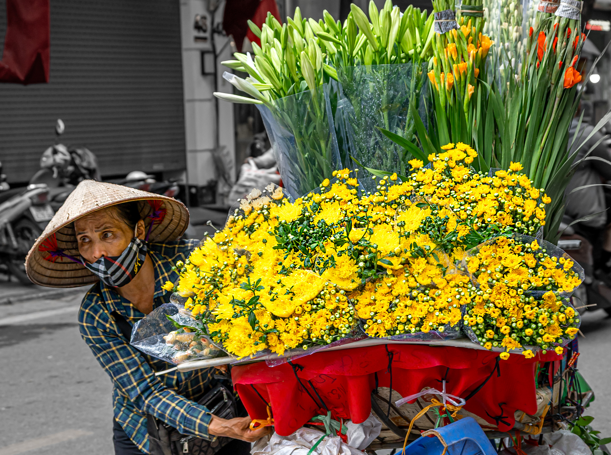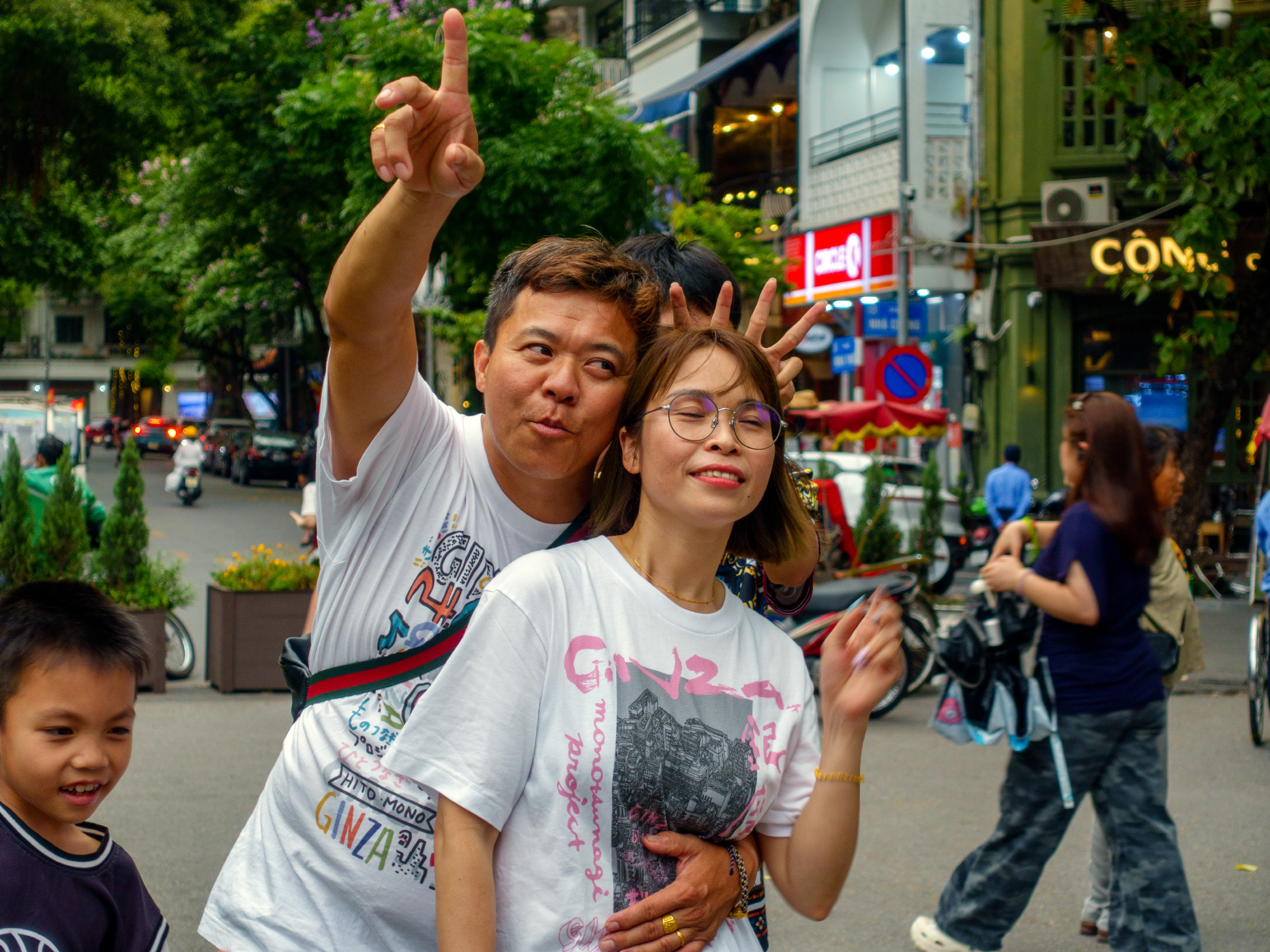 Et puis il y a l’élégance du áo dài, cette robe longue fendue sur le côté, qui épouse la silhouette sans jamais la dévoiler totalement. Elle sublime la finesse des formes, en exaltant la dignité, la retenue et la grâce féminine — une beauté à la fois visible et suggérée. Et ses couleurs franches qui ont l’art de composer avec les ombres, guettées par le photographe. Cependant la plupart de mes visages sont des visages de travailleurs.Travailleuses surtout, et si industrieuses, ces femmes vietnamiennes !