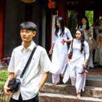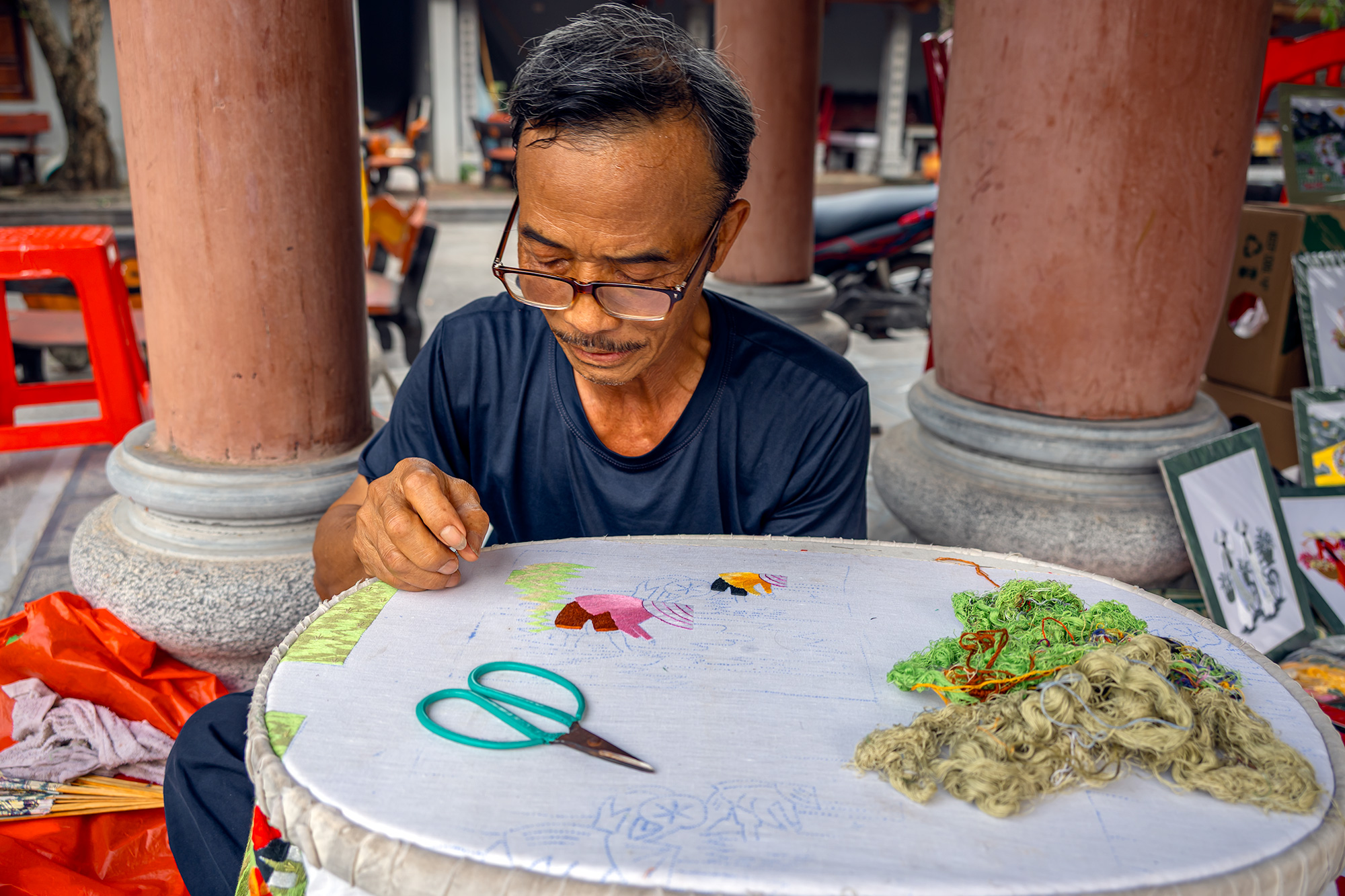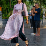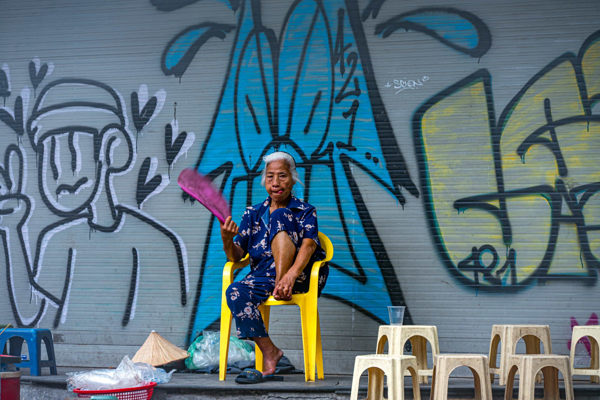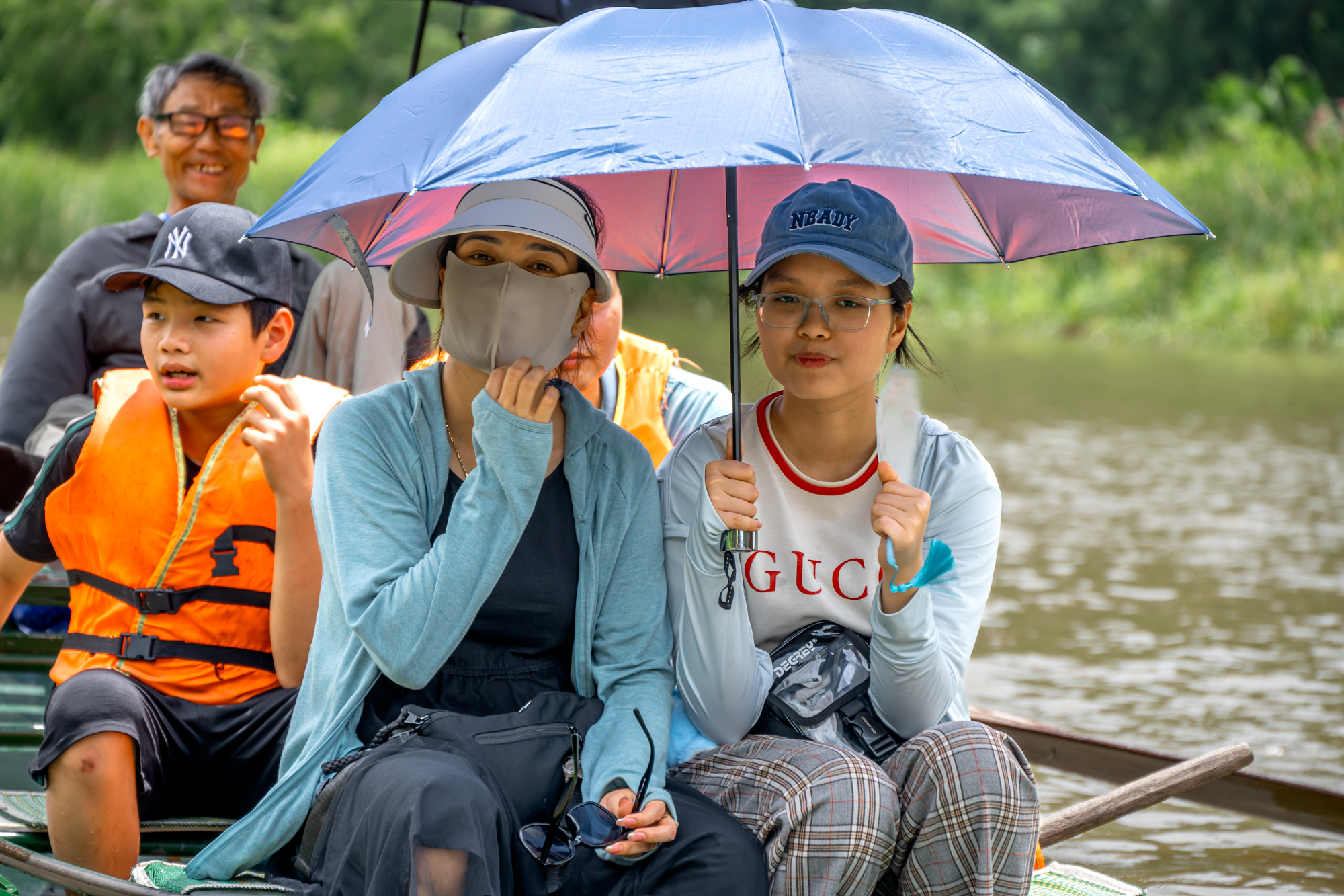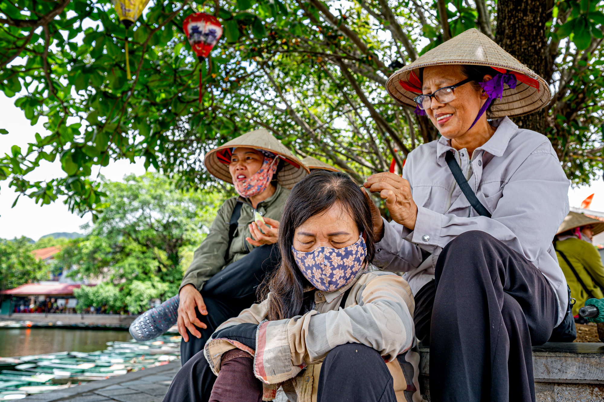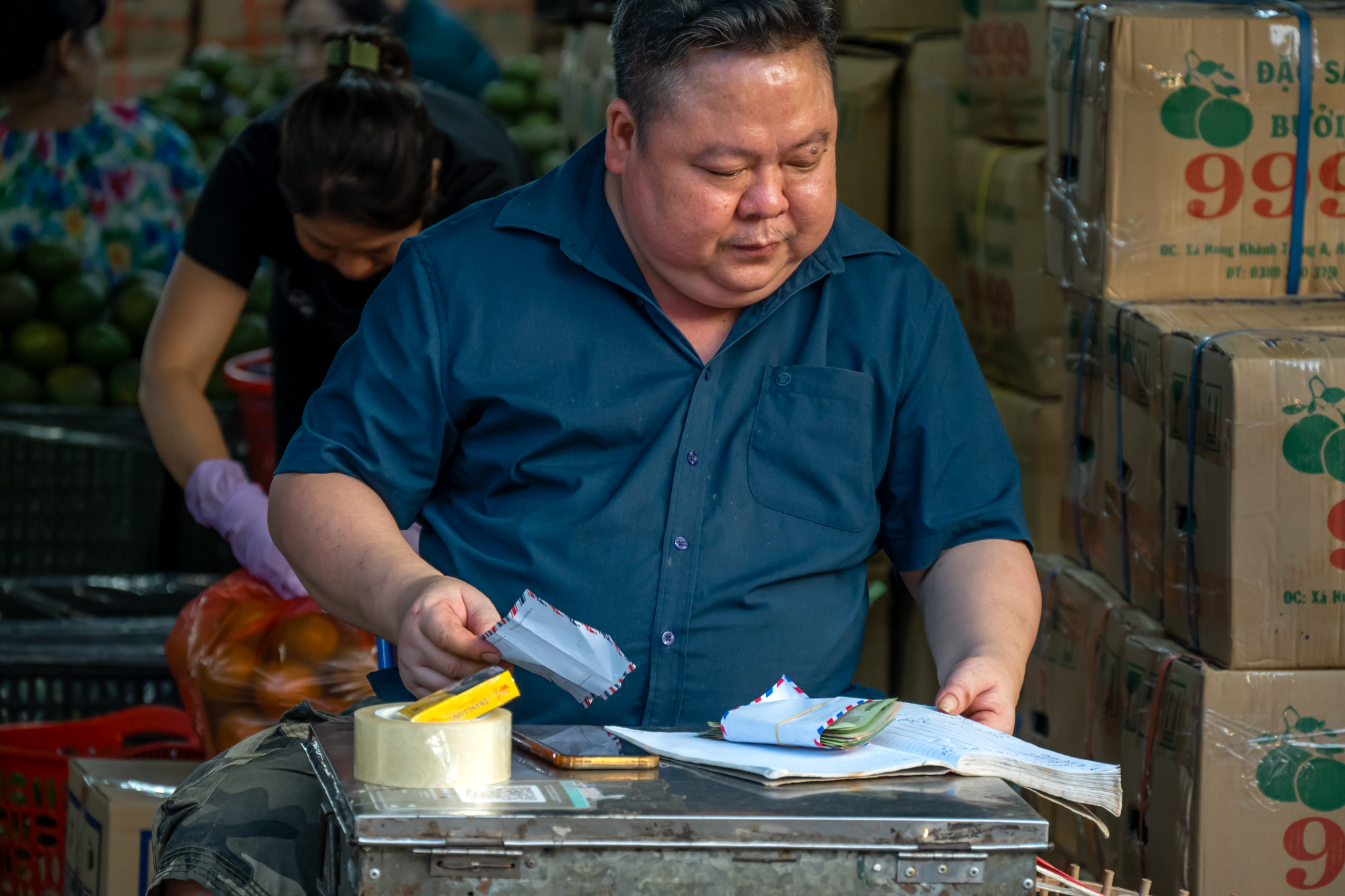 Et puis il y a l’élégance du áo dài, cette robe longue fendue sur le côté, qui épouse la silhouette sans jamais la dévoiler totalement. Elle sublime la finesse des formes, en exaltant la dignité, la retenue et la grâce féminine — une beauté à la fois visible et suggérée. Et ses couleurs franches qui ont l’art de composer avec les ombres, guettées par le photographe. Cependant la plupart de mes visages sont des visages de travailleurs.Travailleuses surtout, et si industrieuses, ces femmes vietnamiennes !
