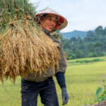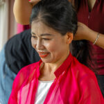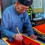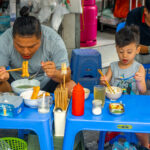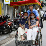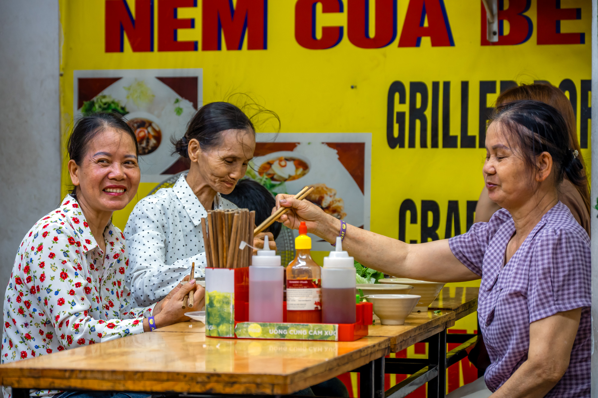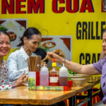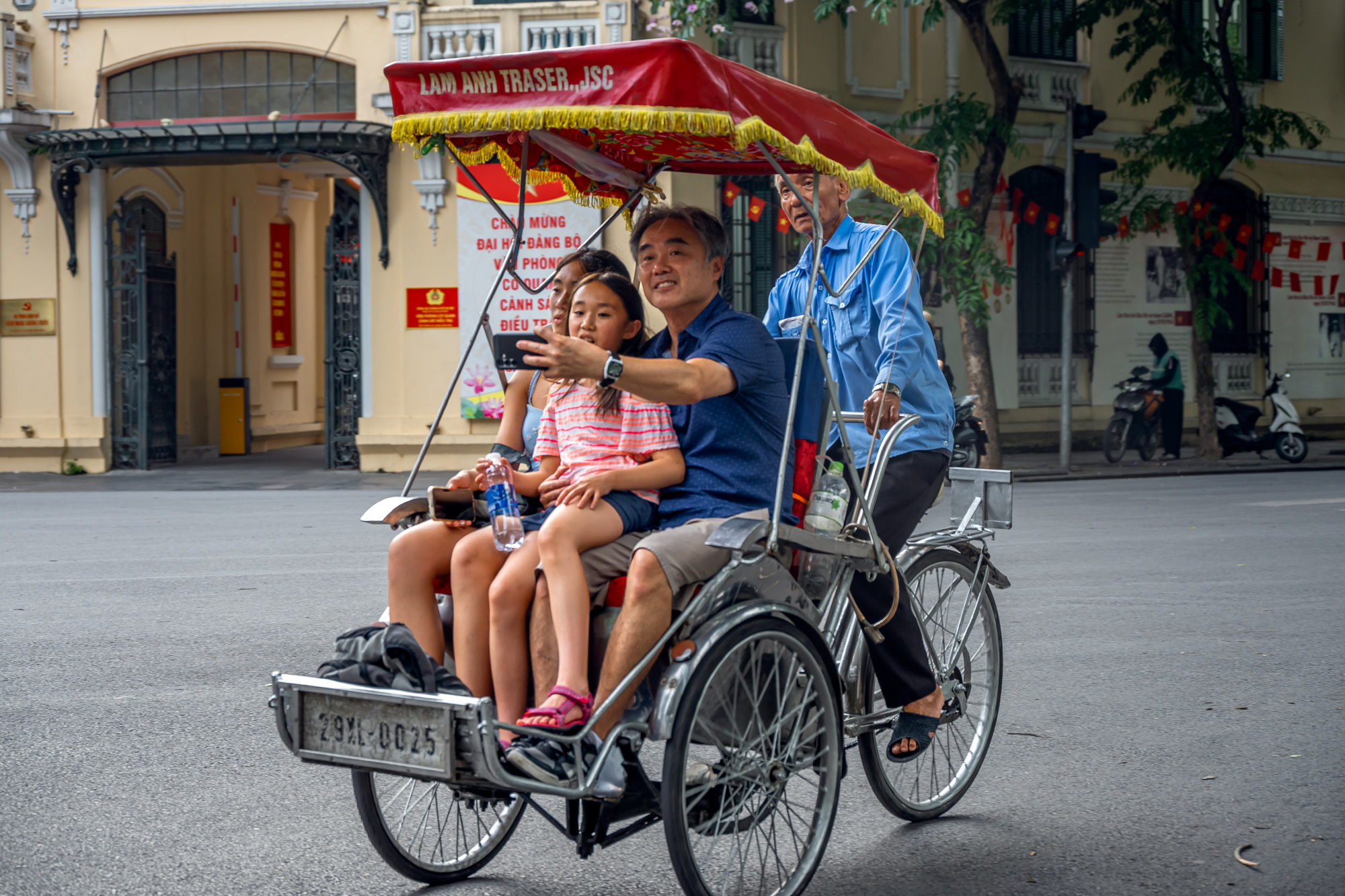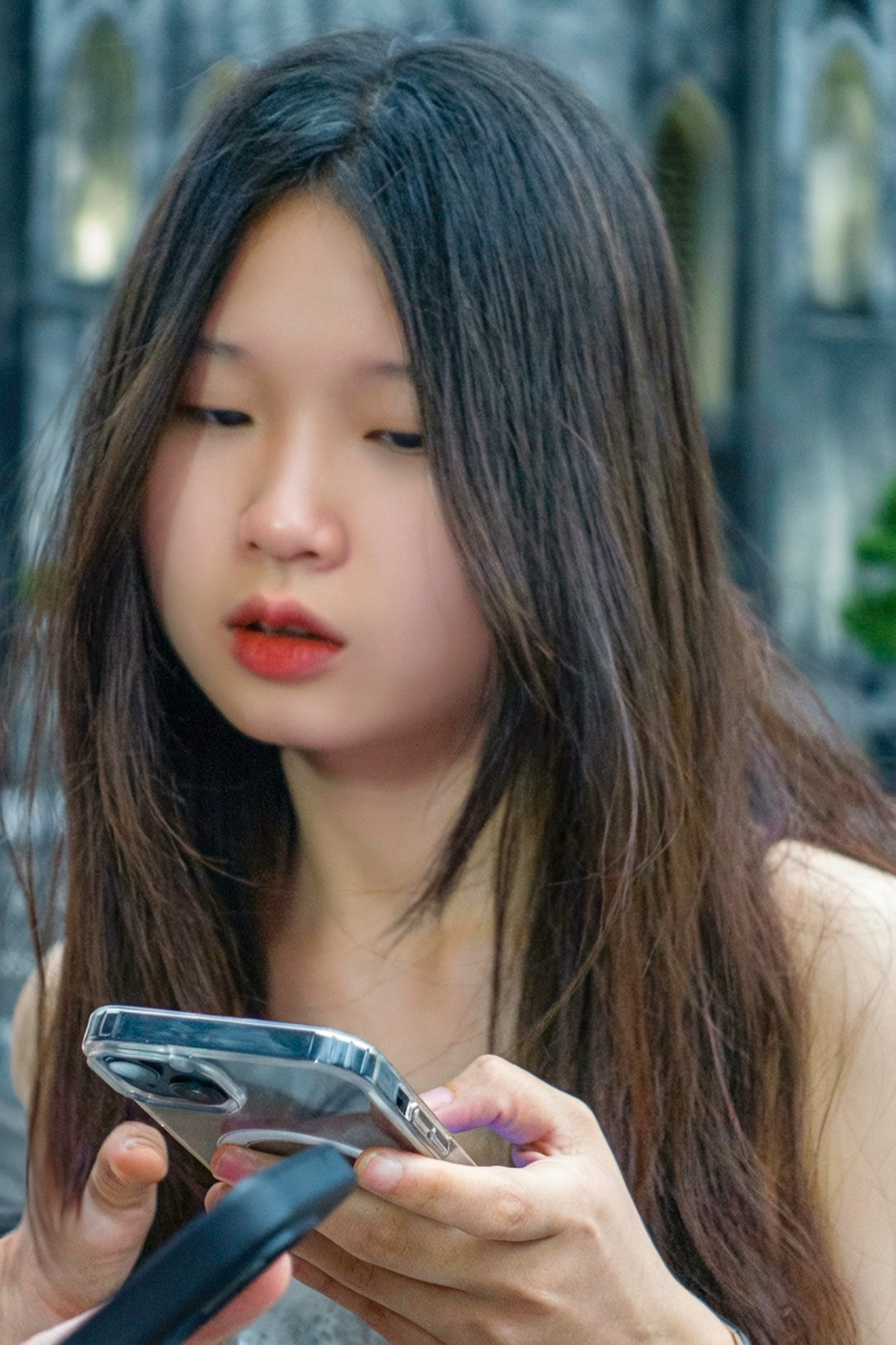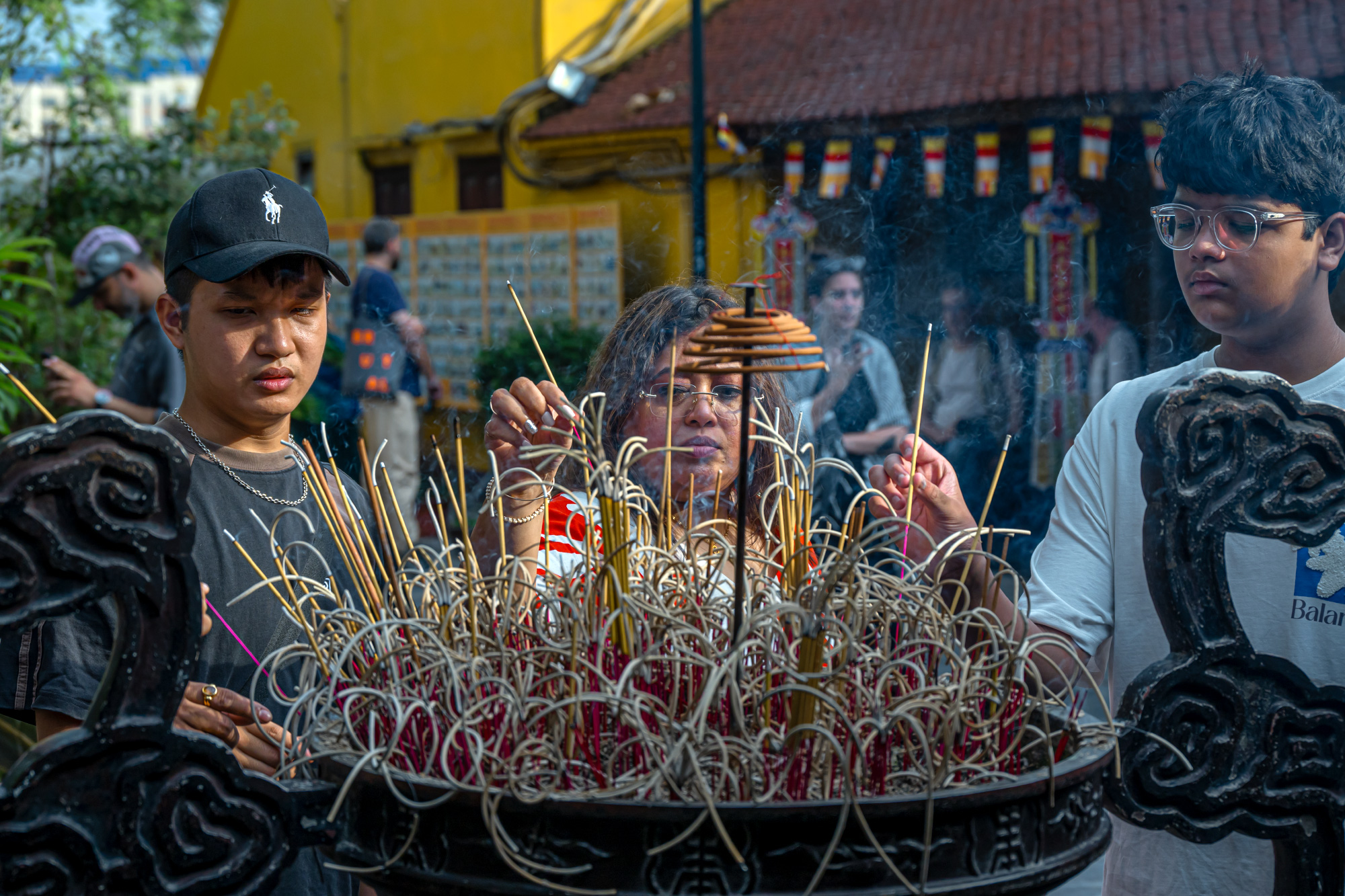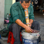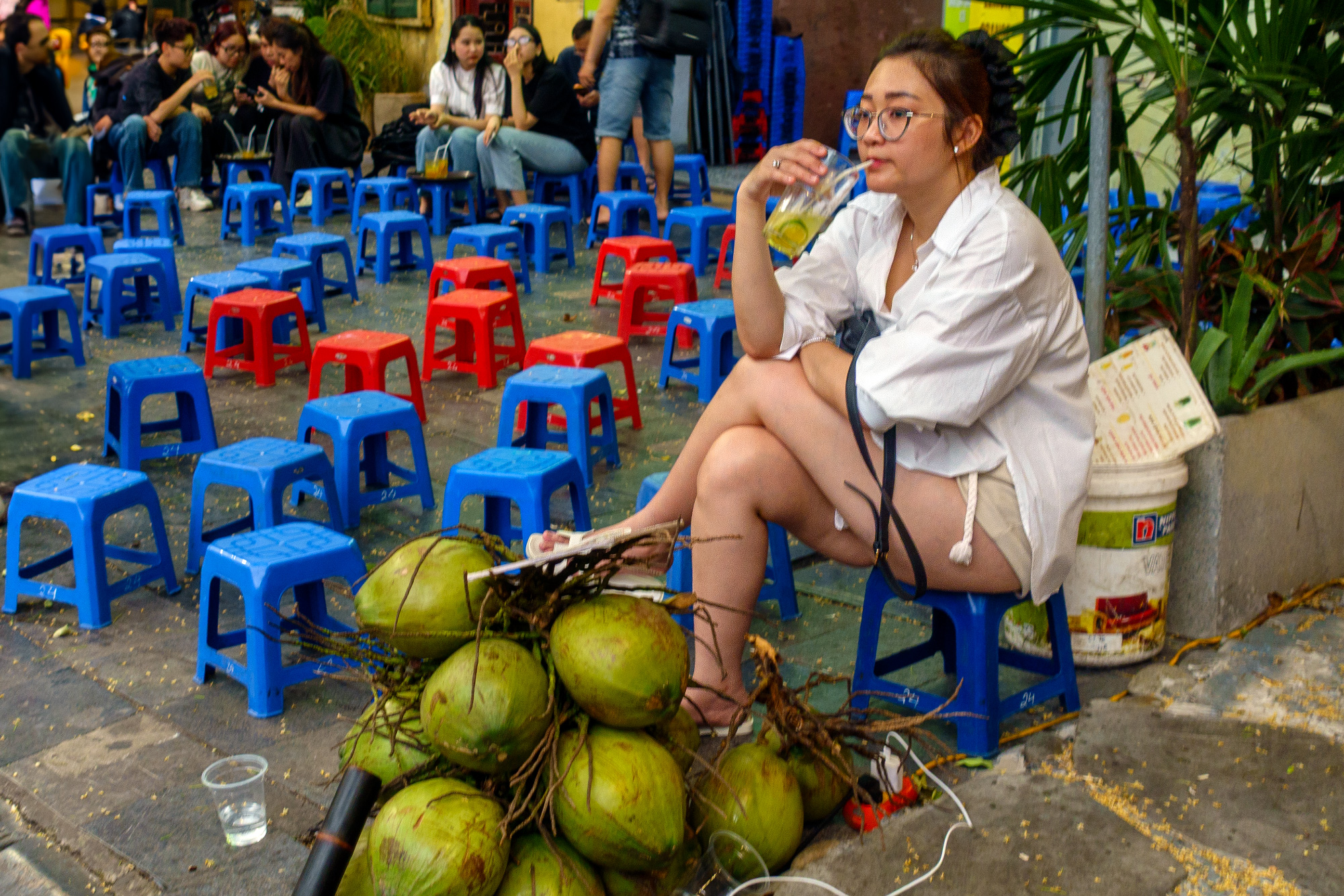 Et puis il y a l’élégance du áo dài, cette robe longue fendue sur le côté, qui épouse la silhouette sans jamais la dévoiler totalement. Elle sublime la finesse des formes, en exaltant la dignité, la retenue et la grâce féminine — une beauté à la fois visible et suggérée. Et ses couleurs franches qui ont l’art de composer avec les ombres, guettées par le photographe. Cependant la plupart de mes visages sont des visages de travailleurs.Travailleuses surtout, et si industrieuses, ces femmes vietnamiennes !