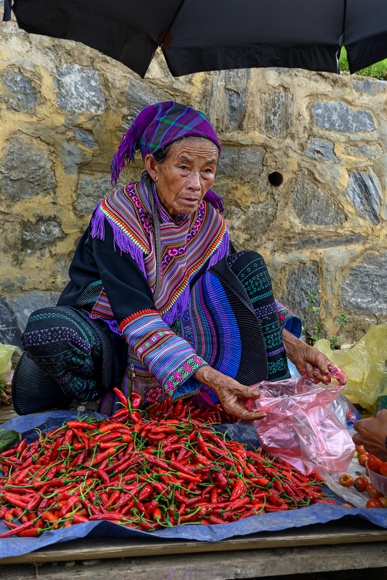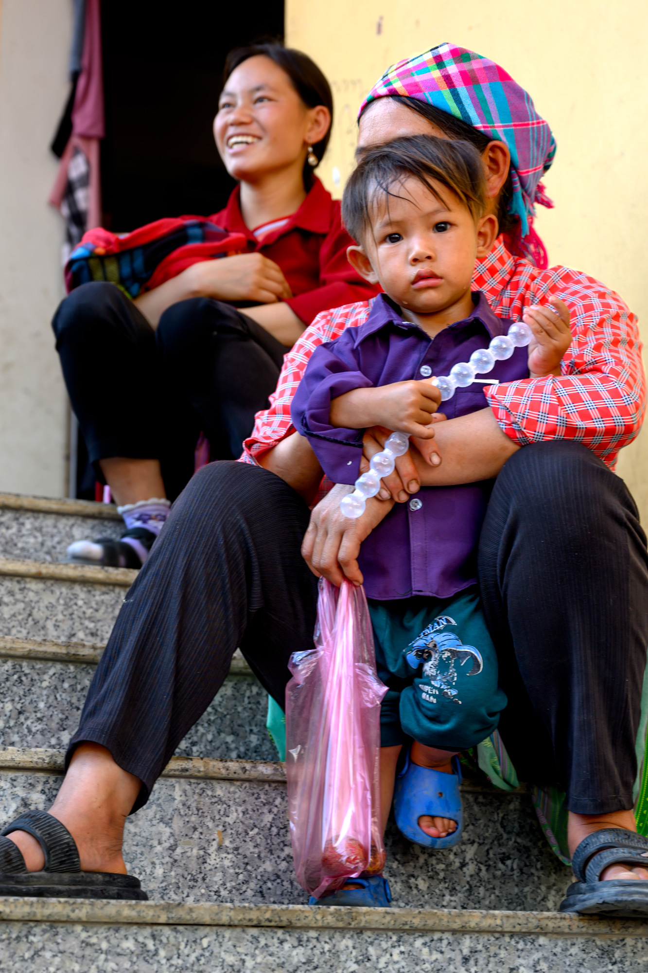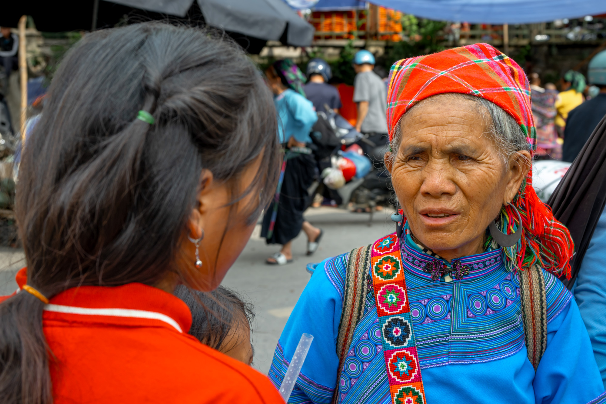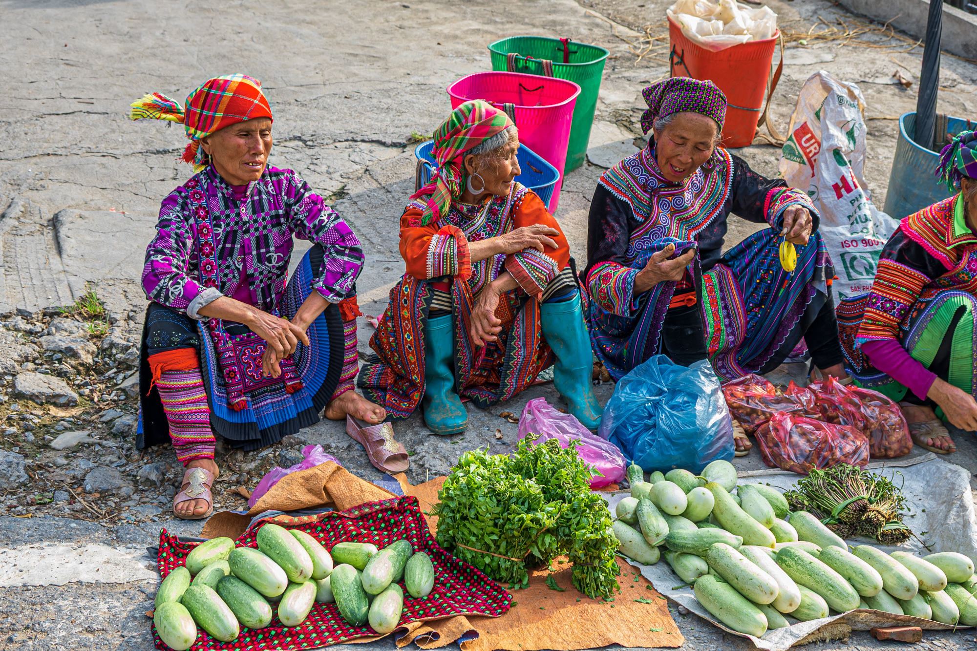 2- C’est, bien sûr, sur les marchés du Nord que l’on rencontre ces fameux groupes ethniques aux costumes si pittoresques. Si les Kinh (aussi appelés « Viêt ») constituent la grande majorité de la population vietnamienne (86%), le reste de la population se répartit entre les 53 (sic !) autres « minorités ethniques ».