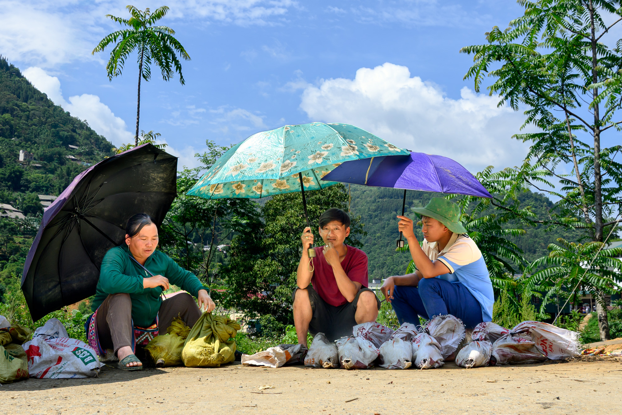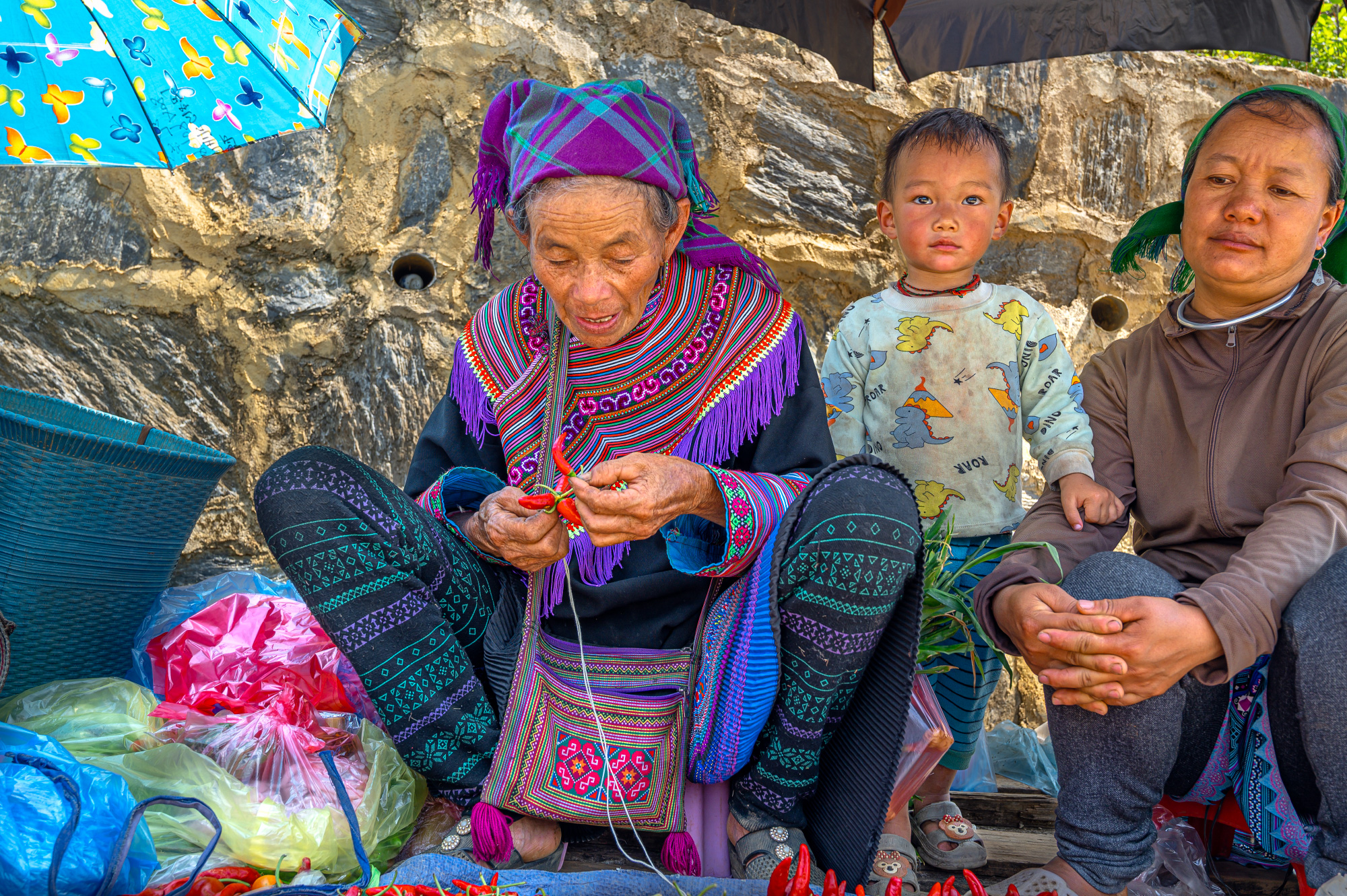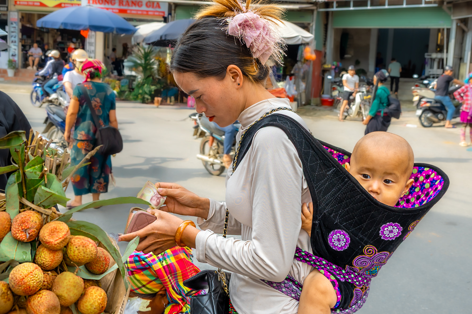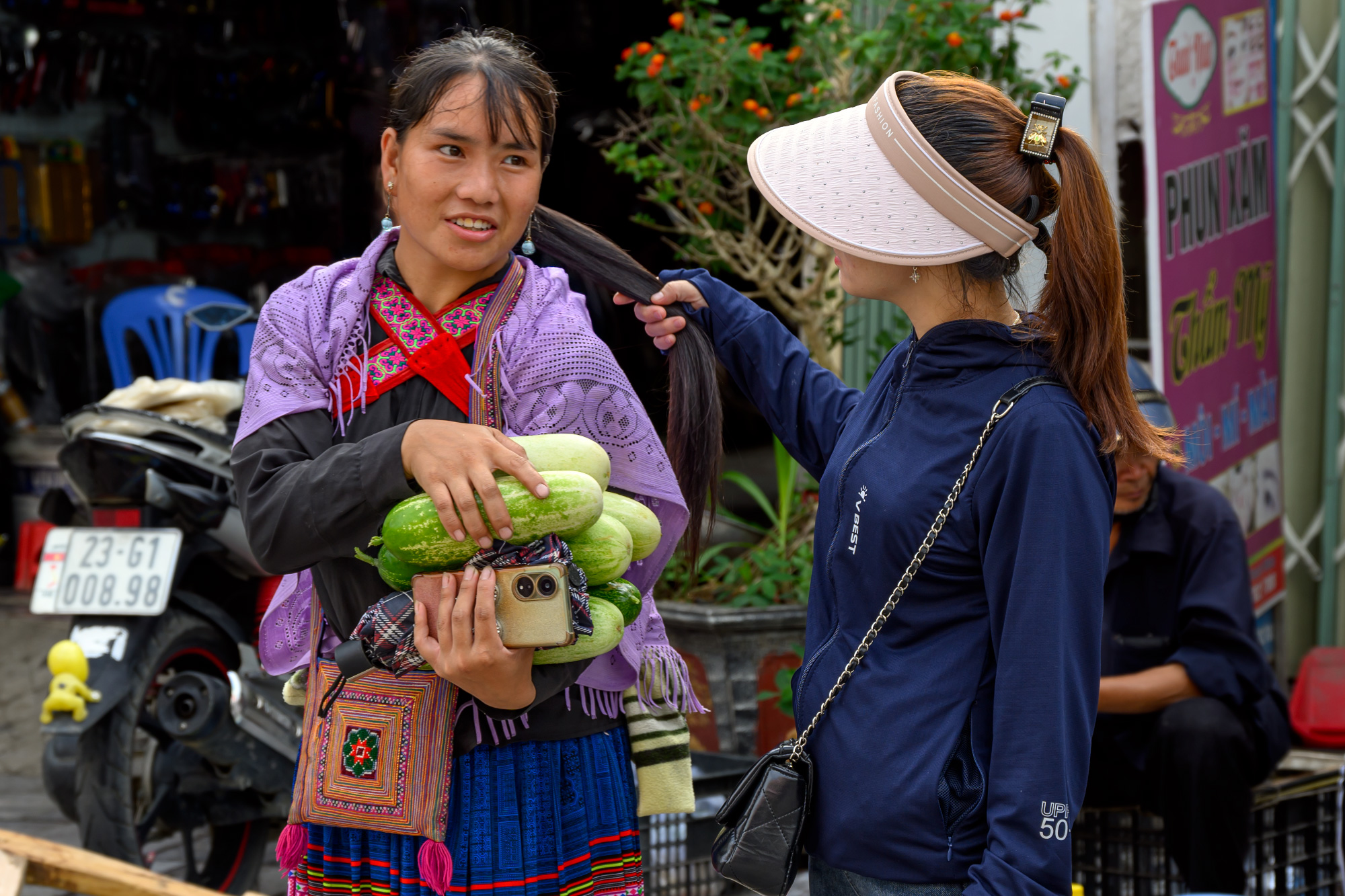 2- C’est, bien sûr, sur les marchés du Nord que l’on rencontre ces fameux groupes ethniques aux costumes si pittoresques. Si les Kinh (aussi appelés « Viêt ») constituent la grande majorité de la population vietnamienne (86%), le reste de la population se répartit entre les 53 (sic !) autres « minorités ethniques ».
