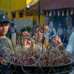 Si le sourire systématique, proverbial et unanime des Thaïlandais (https://jacbouby.fr/galeries/visages-de-thailande/) n’est pas ou plus au rendez-vous, ici, au Vietnam, on retrouve avec bonheur cette incroyable bienveillance face à l’agressivité manifeste de l’objectif du photographe, perforeur d’intimité, scrutant sans vergogne les secrets d’une attitude, d’un regard, d’un pli du visage… dans les rues, les marchés, les transports, les rizières, les villages, à la pagode…