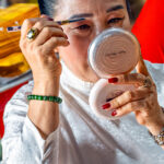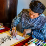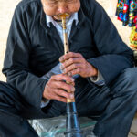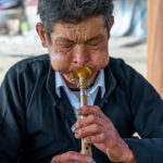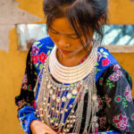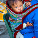 Donc disais-je, ces vêtements traditionnels : robes indigo ou hyper colorées, châles brodés, turbans rouges ou bariolés, broderies, dentelles, batik, bijoux en argent… et ces bas finement décorés !!! Et ces porte-bébés si ouvragés !!! ont manifestement une autre fonction que… de plaire aux touristes (absents 🤪). De surcroît, j’ai bien noté aussi, que les femmes ysont finement maquillées.