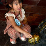 Je signalerai une aide notoire à la discrétion, à défaut d’invisibilité : la plupart des populations possède à présent un téléphone portable, donc un appareil photo dont chacun se sert avec délice pour une sorte de banalisation du portrait en somme. Et il faut voir la jubilation quand vous posez vous-même, seul ou avec eux pour leur photo. Donc vous ne déparez pas trop dans leur paysage quotidien bien que vos appareils hérissés d’objectifs plus ou moins proéminents restent encore une menace !