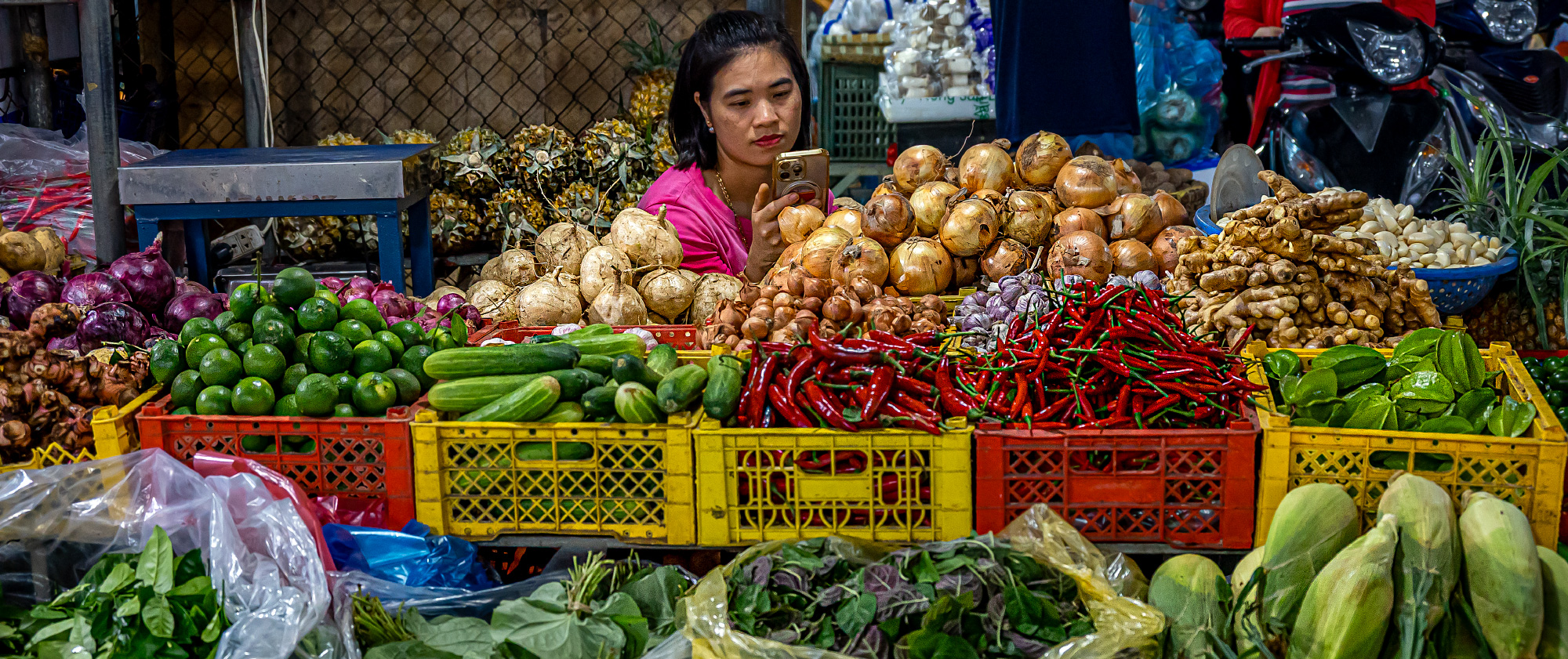Bien sûr que la façade sociale de ces peuples qui se rencontrent ou se côtoient sur tous les marchés passe par ces riches vêtements un peu paradoxaux pour de simples vendeuses de salade ou de letchis…
